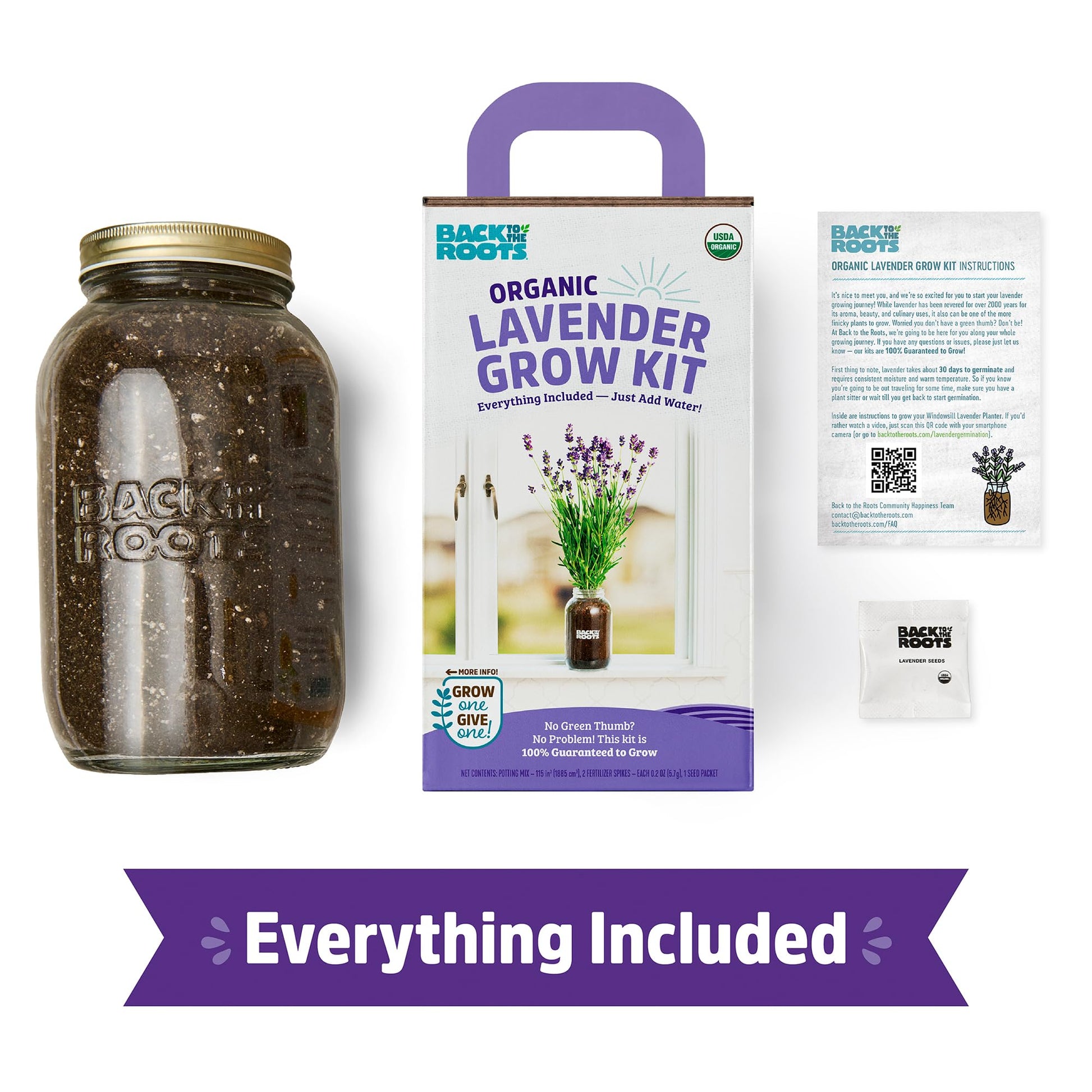 COMPLETE STARTER KIT: Other than our lavender seeds for planting, the Back to the Roots planter kit includes a large glass mason jar, custom organic soil blend, and 2 organic fetilizer spikes; Paired with more than 8 hours worth of sunlight, germination will start happening in just a few short weeks