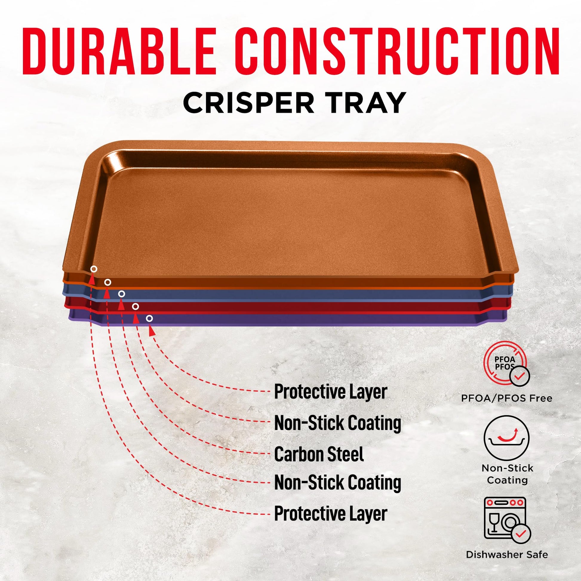 Bakken- Swiss Air Fryer Tray Basket w/Elevated Mesh Great For Oven, For Baking & Crispy Foods, Dishwasher Safe,PTFE/PFOA/PFOS FREE Extra-large 9.5/''x13/'',Copper