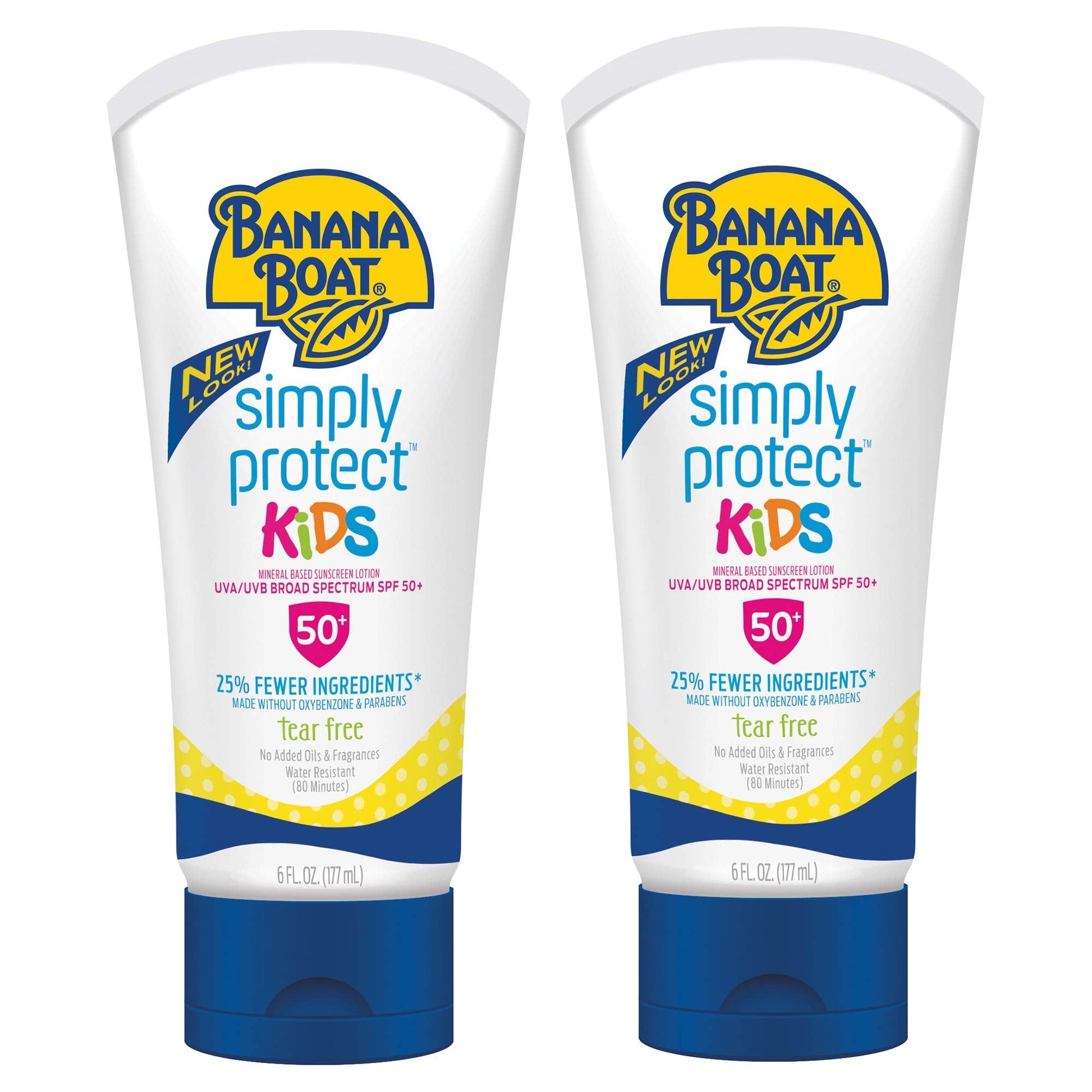 Banana Boat 100% Mineral Kids Sunscreen Lotion SPF 50, Twin Pack | Banana Boat Mineral Sunscreen for Kids, Childrens Sunblock SPF 50, Oxybenzone-Free, 6oz each (Pack of 2)