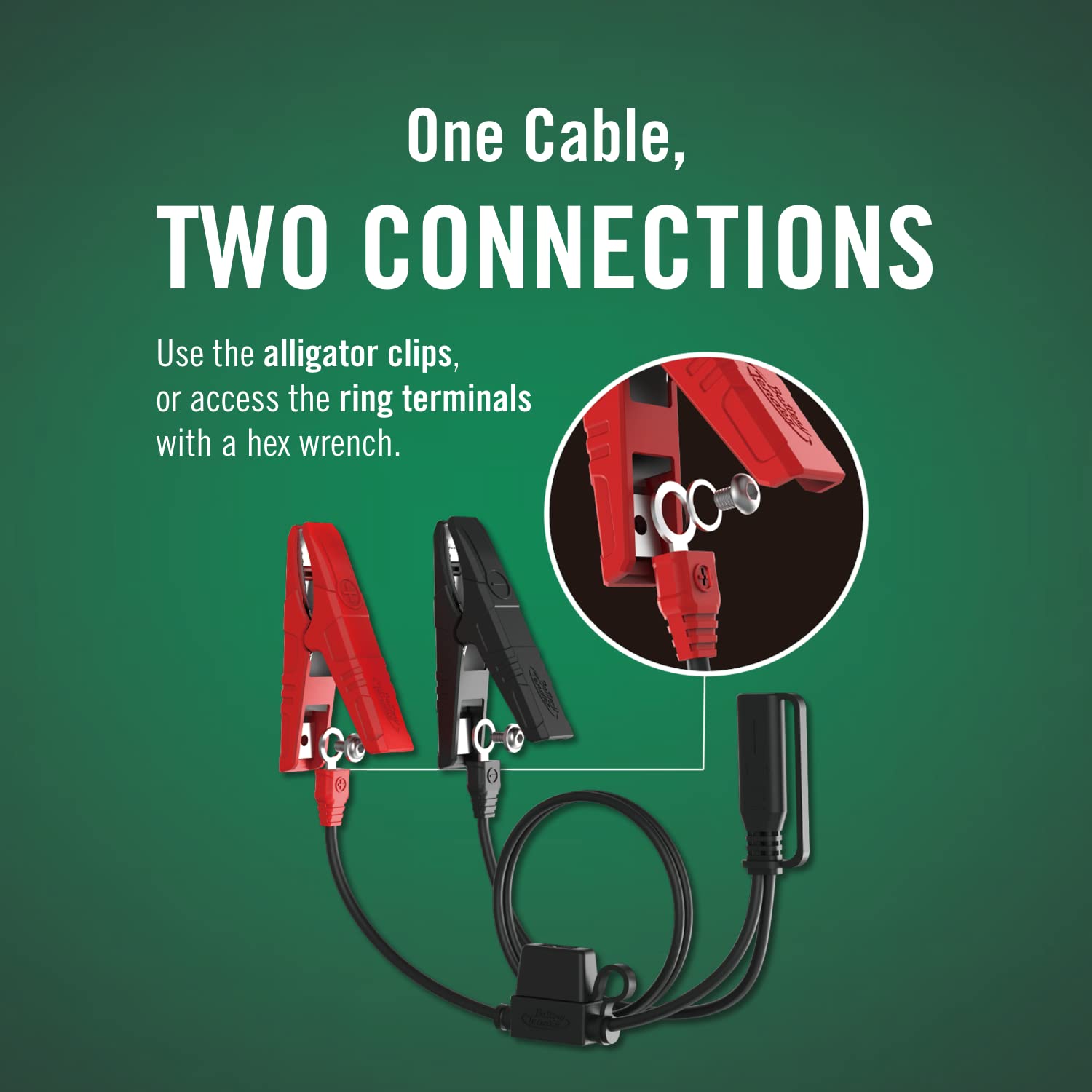 • Includes: 4 AMP battery charger, ring terminal and alligator clip combo cable, 5 year warranty, and lifetime customer service