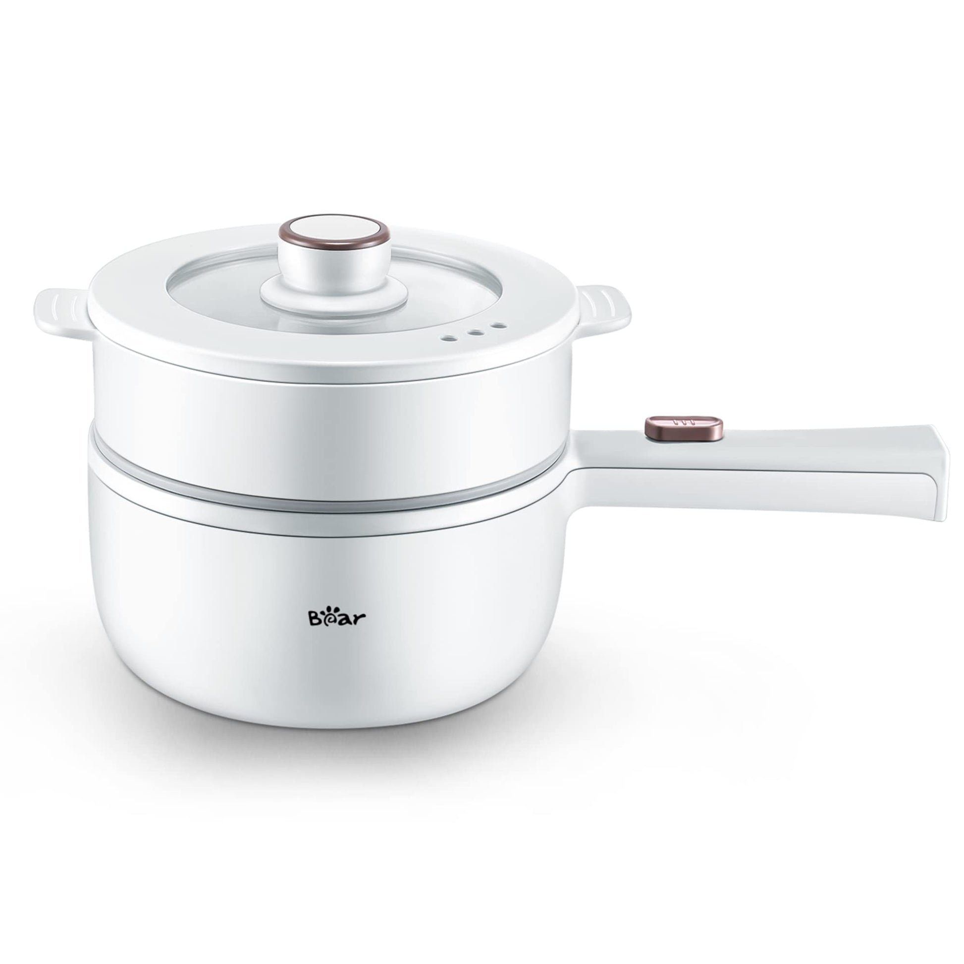 Bear Hot Pot Electric with Steamer, 1.6L Rapid Noodles Cooker, Mini Pot, Non-Stick Frying Pan for Steak, Ramen, Egg, Oatmeal, Soup with Power Adjustable