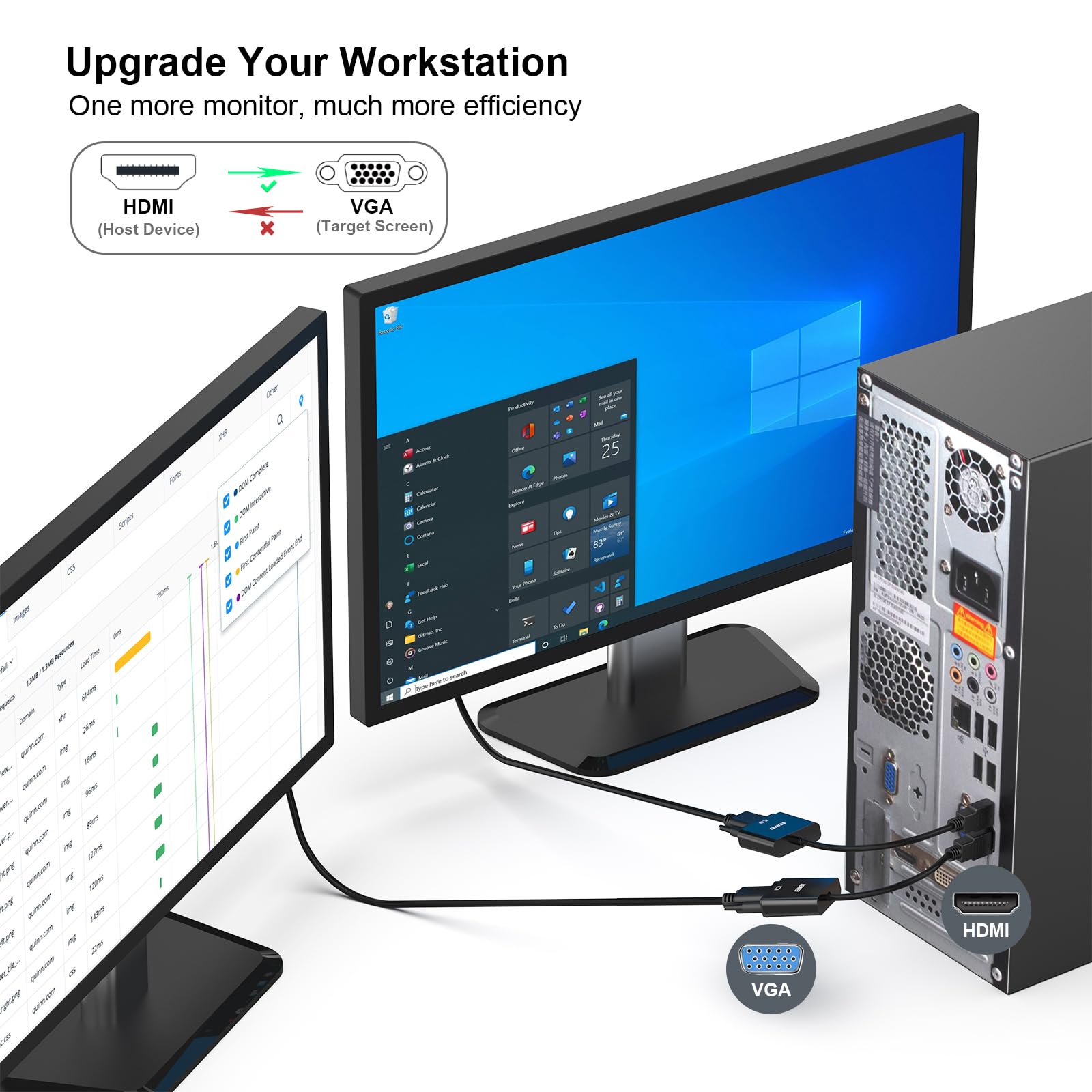 • SUPERIOR STABILITY - Built-in advanced IC chip converts HDMI digital signal to VGA analog signal; It is NOT a bi-directional converter and cannot transmit signals from VGA to HDMI