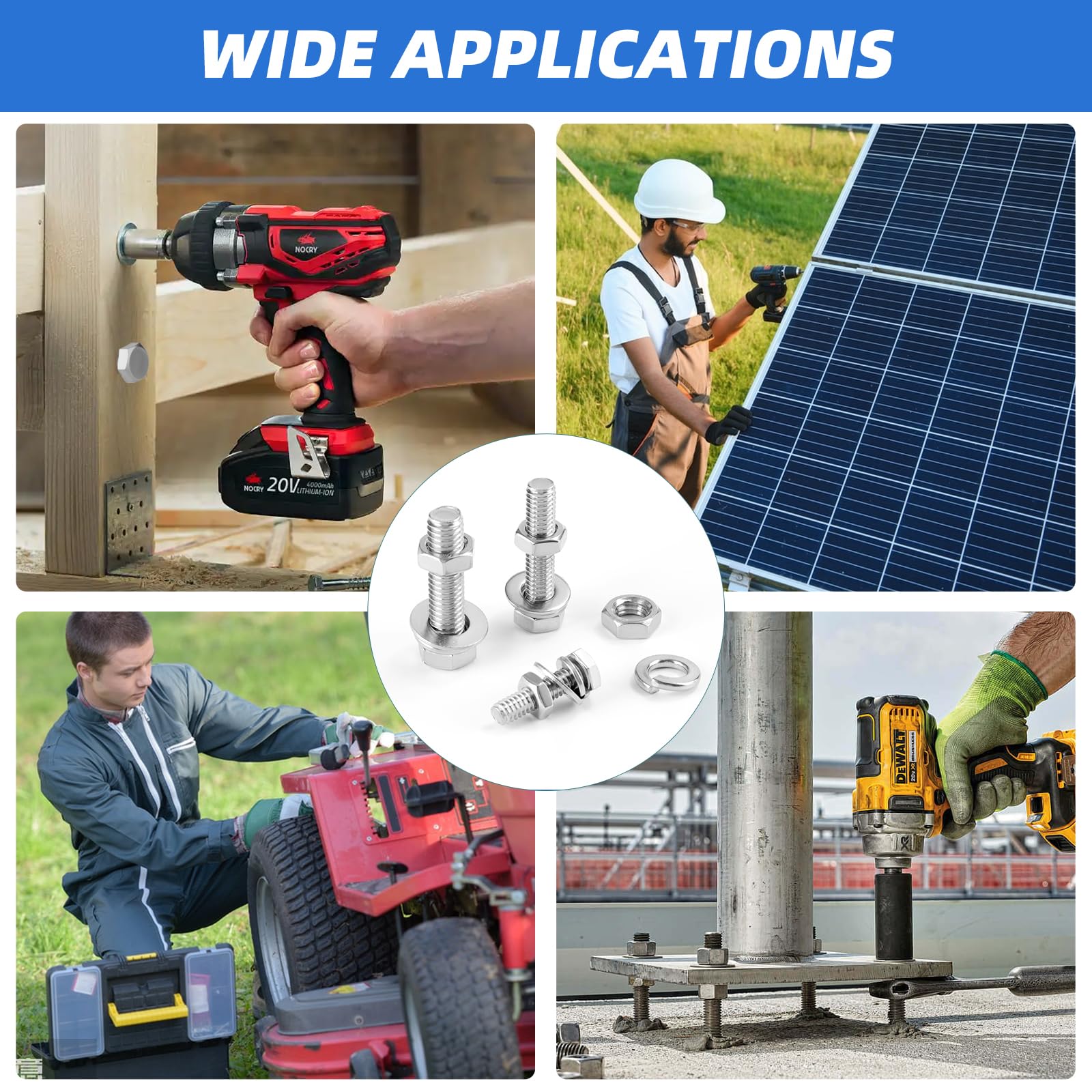 • 【304 STAINLESS STEEL & FULLY THREAD】The hex bolts and nuts kit are made of stainless steel 304 and fullly threaded, high-strength hardware with decent corrosion resistance. Perfect for general uses, even use it below the water line.