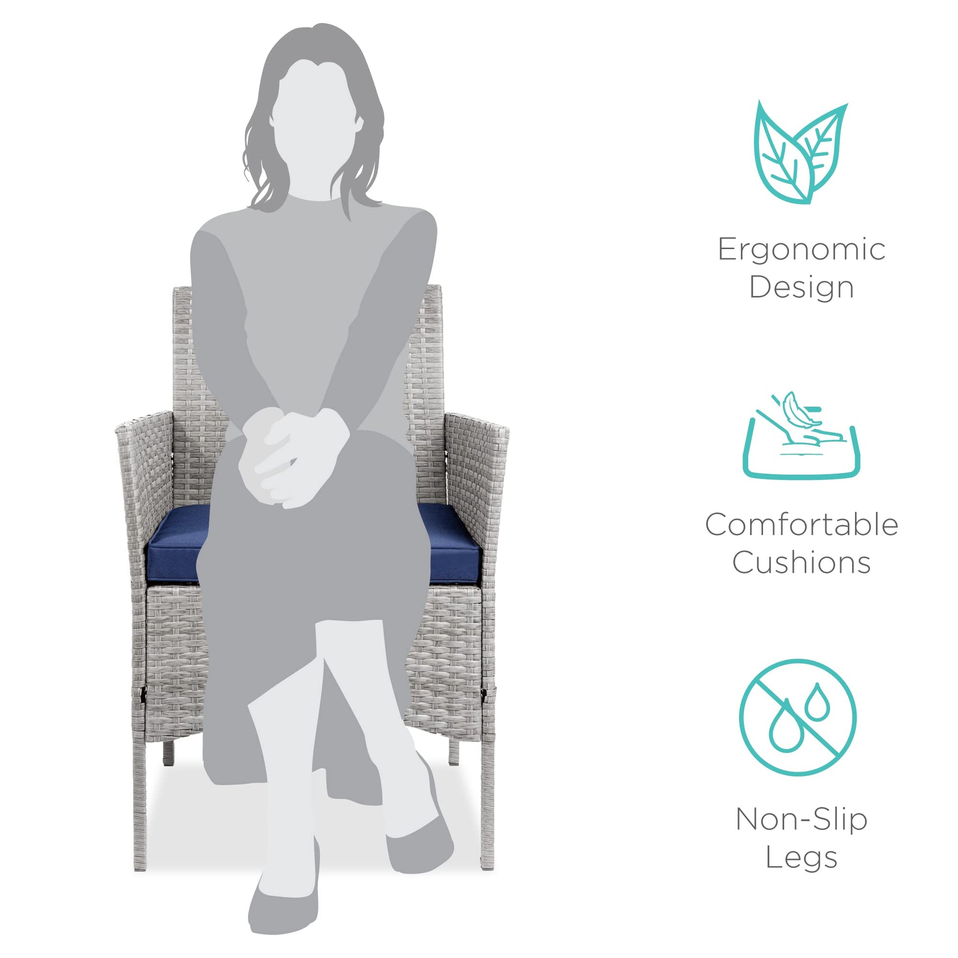 Best Choice Products 3-Piece Outdoor Wicker Conversation Bistro Set, Space Saving Patio Furniture for Garden w/Side Table - Gray/Navy