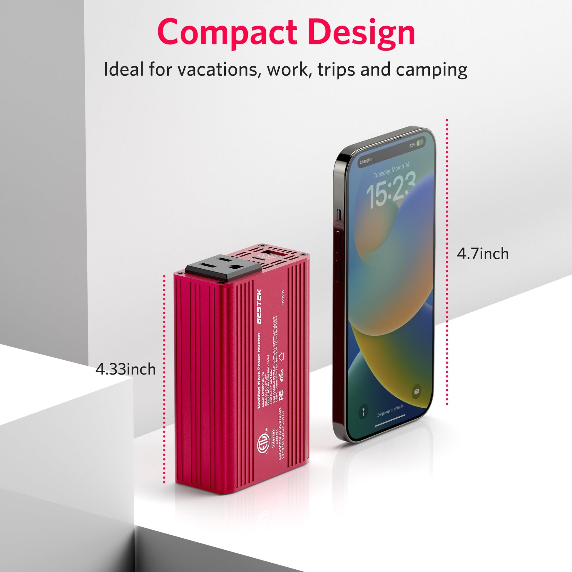 • PORTABLE WITH COMPACT DESIGN: The lightweight inverter is space-saving and easy storage, Ideal for use on long car road trips, family vacations, and camping. Great for charging string lights, laptops, tablets, breast pumps, CPAP machines, GoPro cameras, nebulizers, game consoles, kindle, TV, DVD players, lights, iPhones, iPad, car vacuum cleaners, LED table lamps, mini-fridges, and other electronic devices.