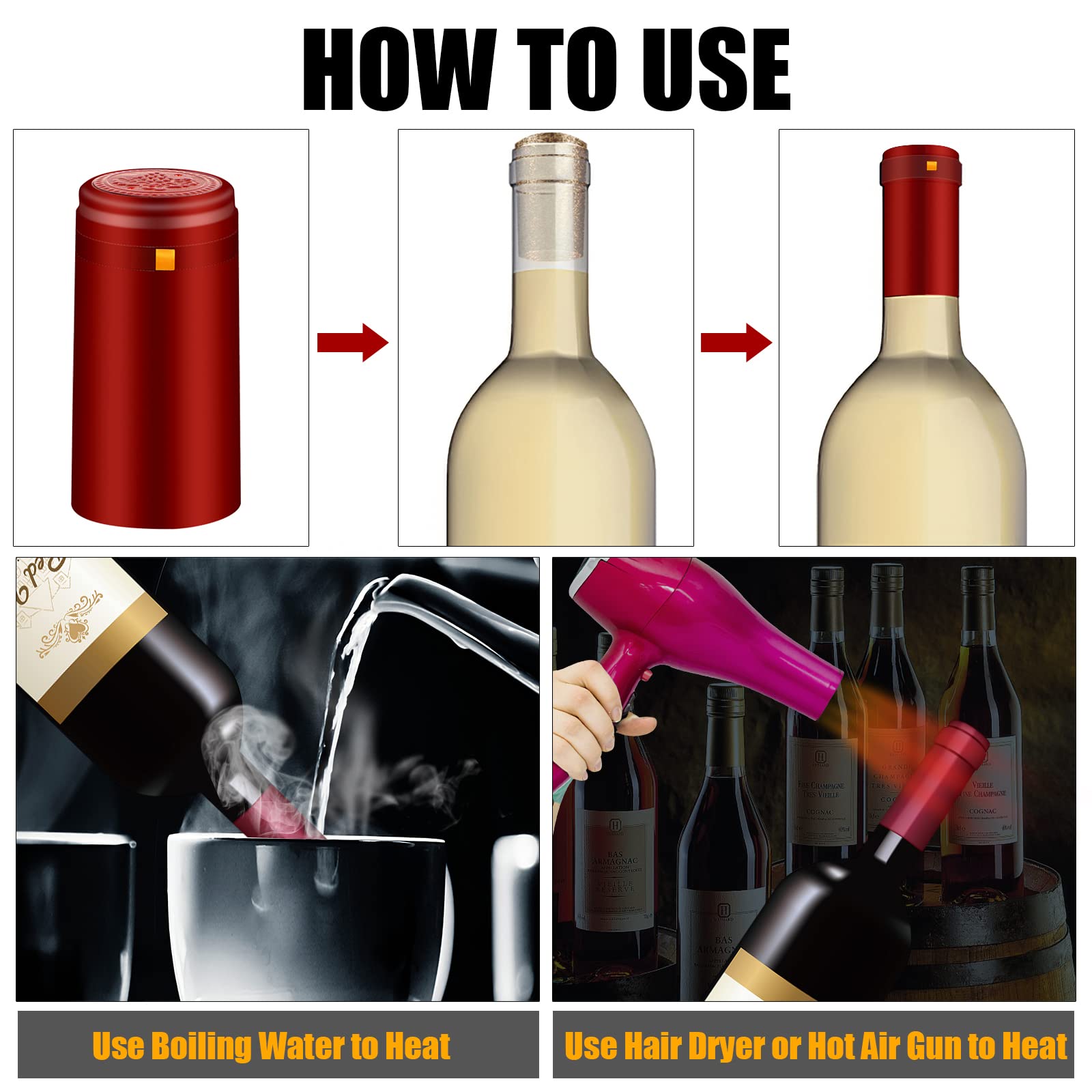 • 3. EASY TO USE: shrink capsules are very easy to use. If you don’t have a professional heat shrink machine for the capsules, you can use the boiling hot water method (see step-by-step guide among the pictures). These shrink sleeves are easy to open as well. it comes with tear-off tabs.