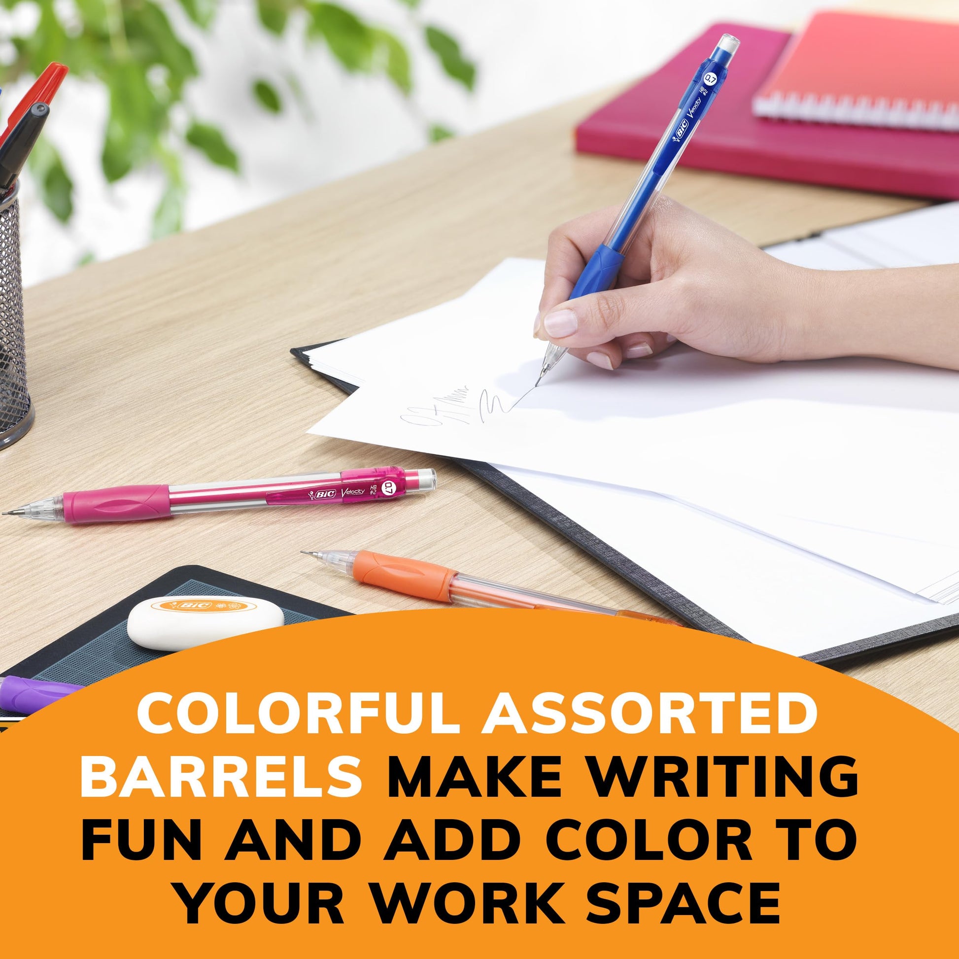 Details: Experience smooth, dark writing with BIC Velocity Mechanical Pencils with Erasers. These 0.7mm mechanical pencils have a strong point that’s ideal for a variety of everyday writing activities. The strong lead doesn’t smudge and erases cleanly, so your work looks neat and professional. Convenient and reliable, BIC Velocity Number 2 Mechanical Pencils 0.7 mm are always ready and never need sharpening; to advance the pencil lead, simply click the built-in eraser. These BIC pencils have a sophisticated, modern look, and their colorful clips easily attach to pockets, notebooks and more. The No. 1 selling mechanical pencil brand in the United States*, BIC offers dependable performance and value that you can trust. Looking for larger quantities of school or office supplies? Choose BIC Mechanical Pencils With Erasers for a high-quality, safe and affordable product you can trust. *Source: The NPD Group/Retail Tracking Service and Commercial Tracking Service, U.S., based on actual unit sales, 12ME June 2022 combined.