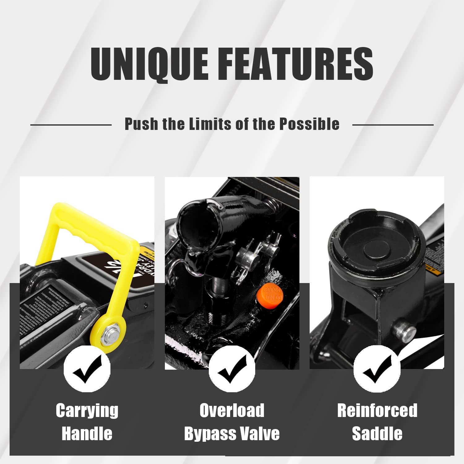 • Features a 1.5 ton (3,000 lbs) capacity with a minimum lifting height of 5-3/5' and a maximum height of 13'; Ideal for most cars, not recommended for SUVs and trucks