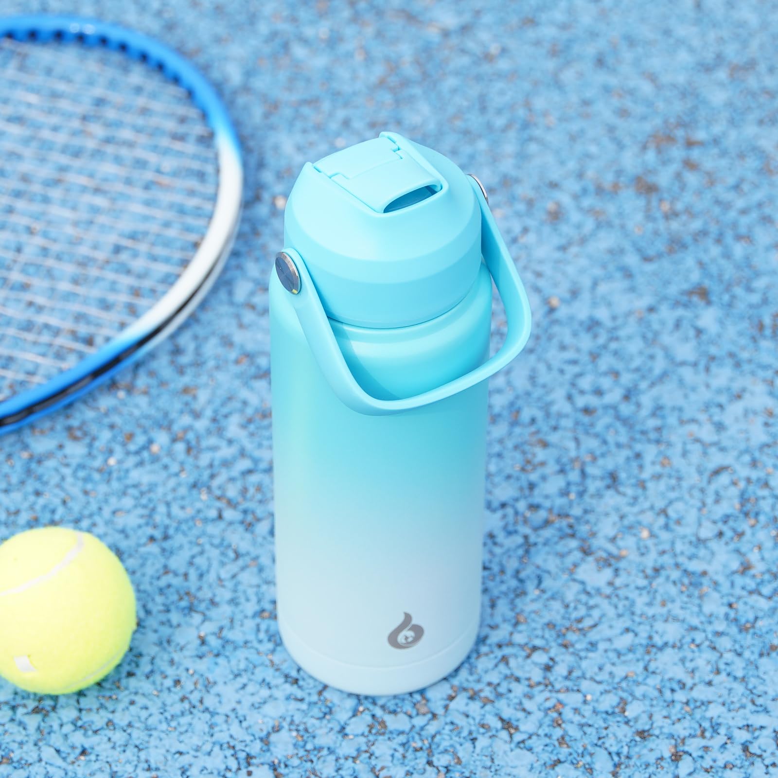 • INSULATED WATER BOTTLE WITH UPGRADED STRAW LID: BJPKPK insulated water bottle with straw lid use hidden flip-top Straw Lid to ensure open and close easily with one hand. The handle is soft and can freely rotate 180° for effortless carrying. Soft silicone nozzle will give you a better drinking experience. Upgraded hidden nozzle design can also keep the nozzle clean and ensure leakproof when it closed