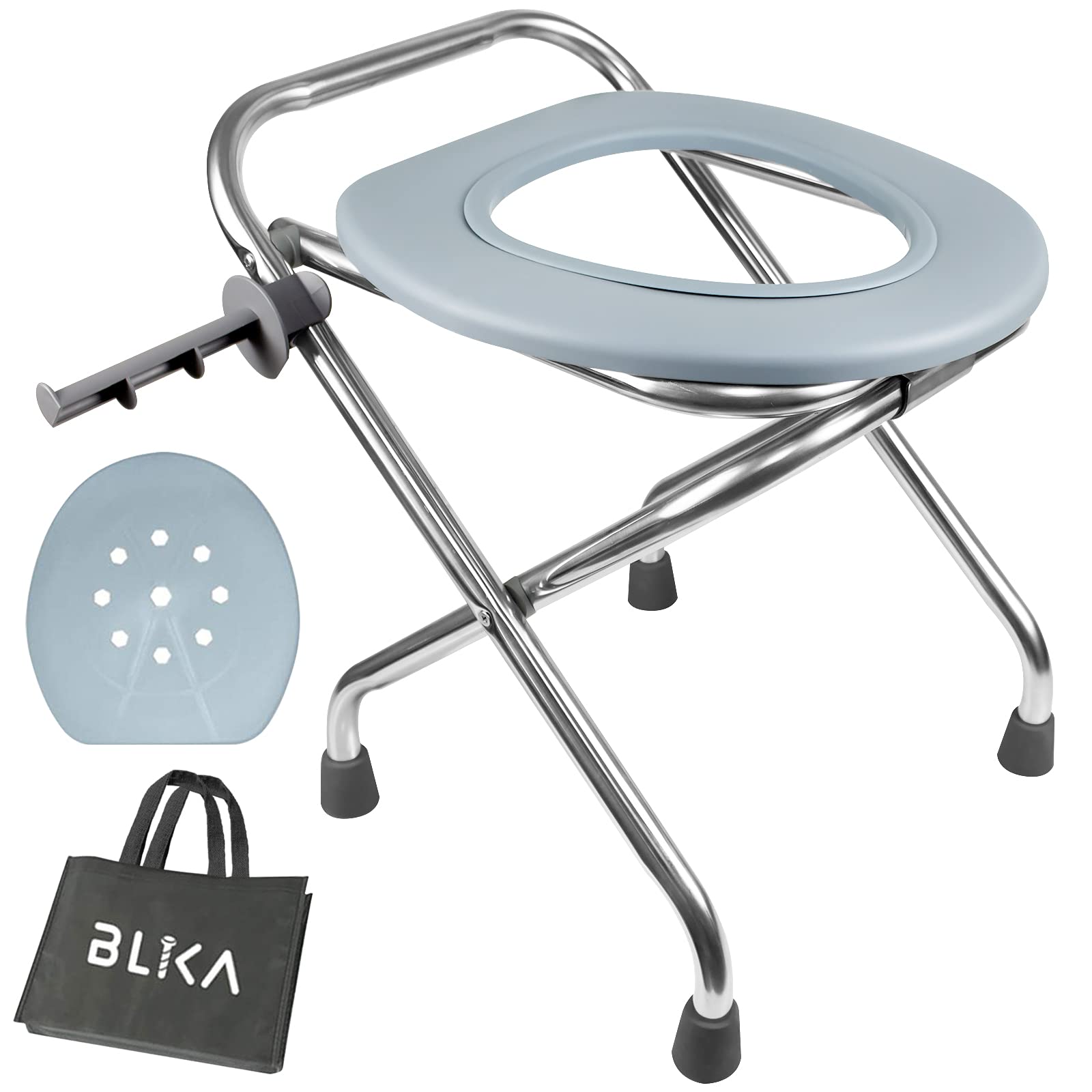 BLIKA Portable Toilet for Camping, 400LBS Stainless Steel Foldable Camp Travel Toilet for Adults, 16-Inch for Truckers, Camping, RV Travel, Road Trips, Outdoor Use