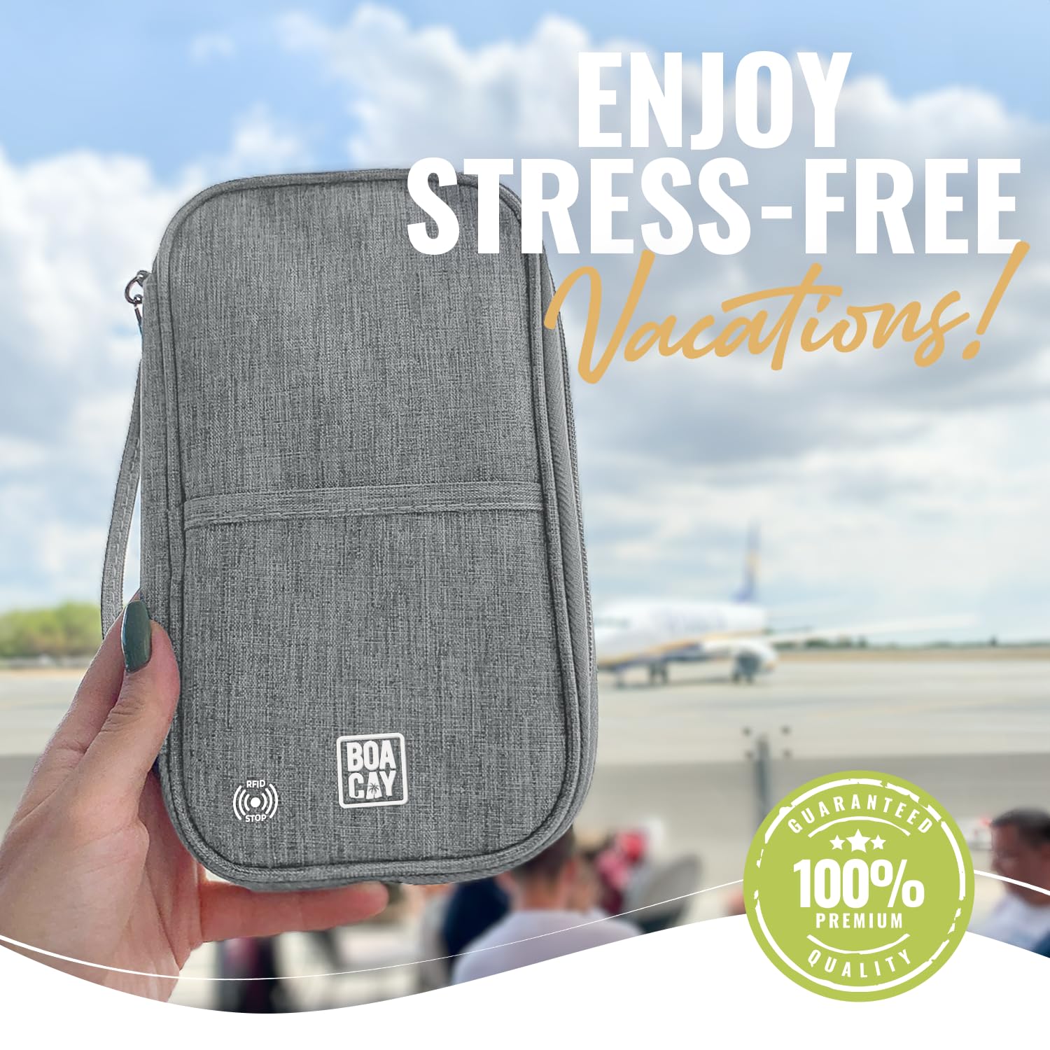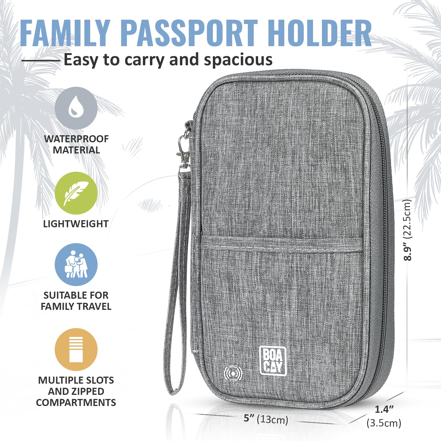 BOACAY Travel Document Organizer with RFID, Family Passport Holder, Wallet for Women & Men, Portable & Waterproof Case for Cards, Boarding Pass, Money