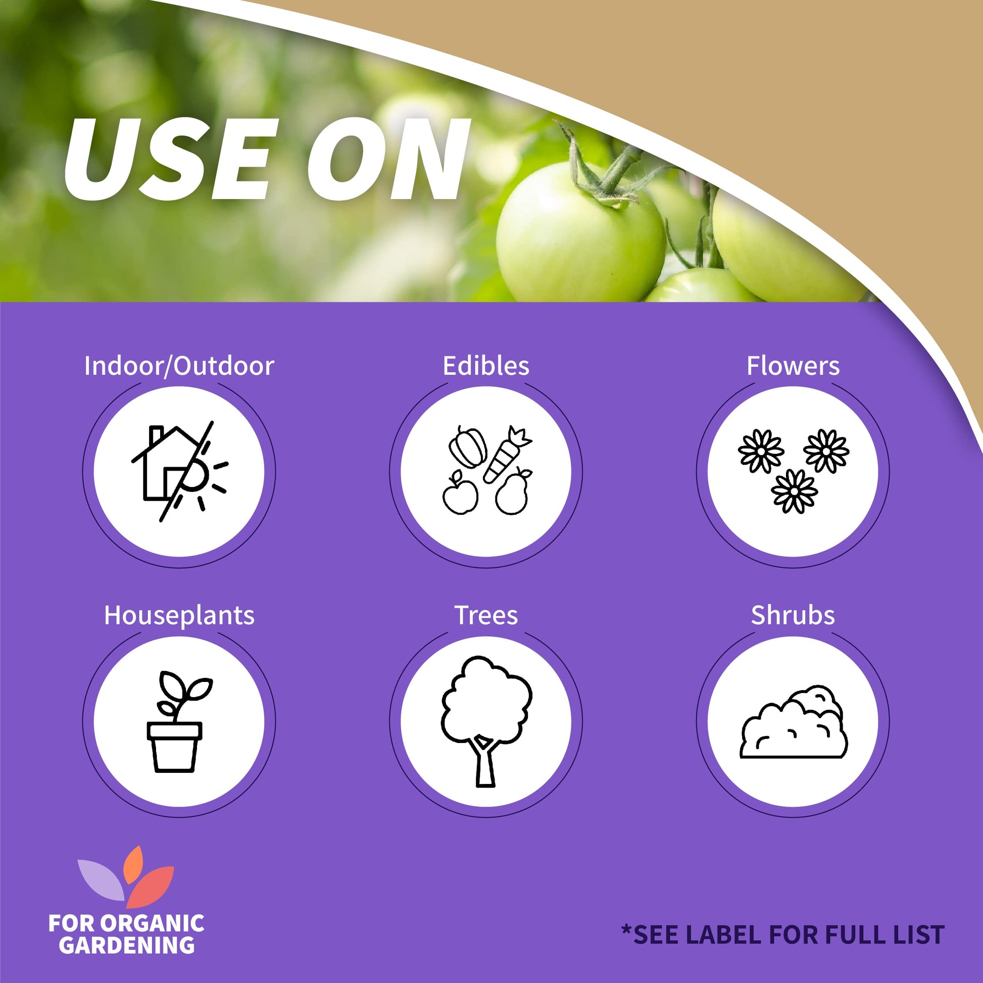 • ORGANIC GARDENING - Derived from the Neem seed, our product is great for use on roses, flowers, vegetables, fruits, herbs, indoor houseplants, trees and shrubs. It's approved for organic gardening.