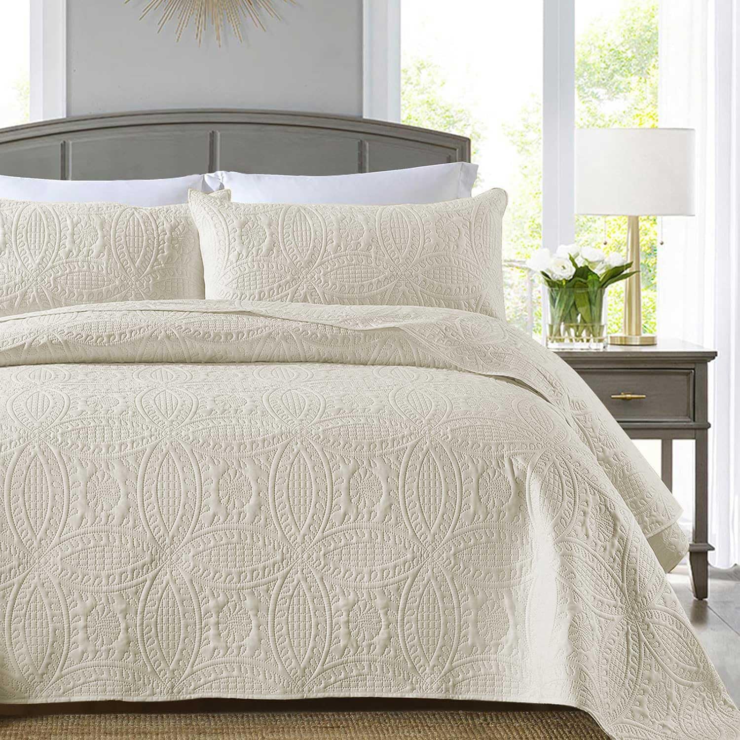 Details: Boryard Beige King Size Quilt Set, 3-Piece Lightweight Soft Bedspread 104x90 inches Bedding Set with 2 Pillow Shams, Geometric Embossed Pattern