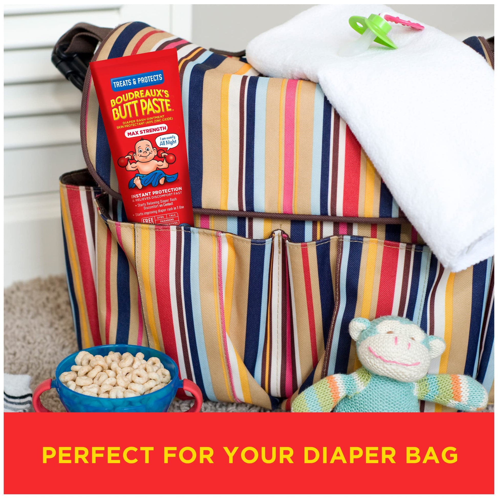 Details: Developed by a pharmacist and father of four, Boudreaux's Butt Paste Brand has been trusted for over 40 years by pediatricians and parents to help protect irritated skin due to diaper rash and to instantly seal out wetness. When used daily, it is also a great way to help prevent diaper rash. Boudreaux's Butt Paste Maximum is a thick, cream-like protective diaper rash ointment with 40% Zinc Oxide. It provides overnight protection, starts to soothe on contact, seals out moisture and helps keep baby’s boo-tay dry. Boudreaux's Butt Paste Maximum Strength is free from dyes, preservatives, parabens and talc. Don't forget to keep your baby’s butt protected and your hands mess free with our diaper rash cream and ointment brush applicator. Boudreaux’s Butt Paste has diaper ointments for any baby’s boo-tay needs including maximum strength, sensitive, natural* aloe, and butt barrier. Boudreaux's Butt Paste products are FSA- and HSA-eligible in the US. *Other ingredients may not be natural. Natural refers to the source of listed ingredients and allows for only minimal, non-chemical processing of these ingredients.