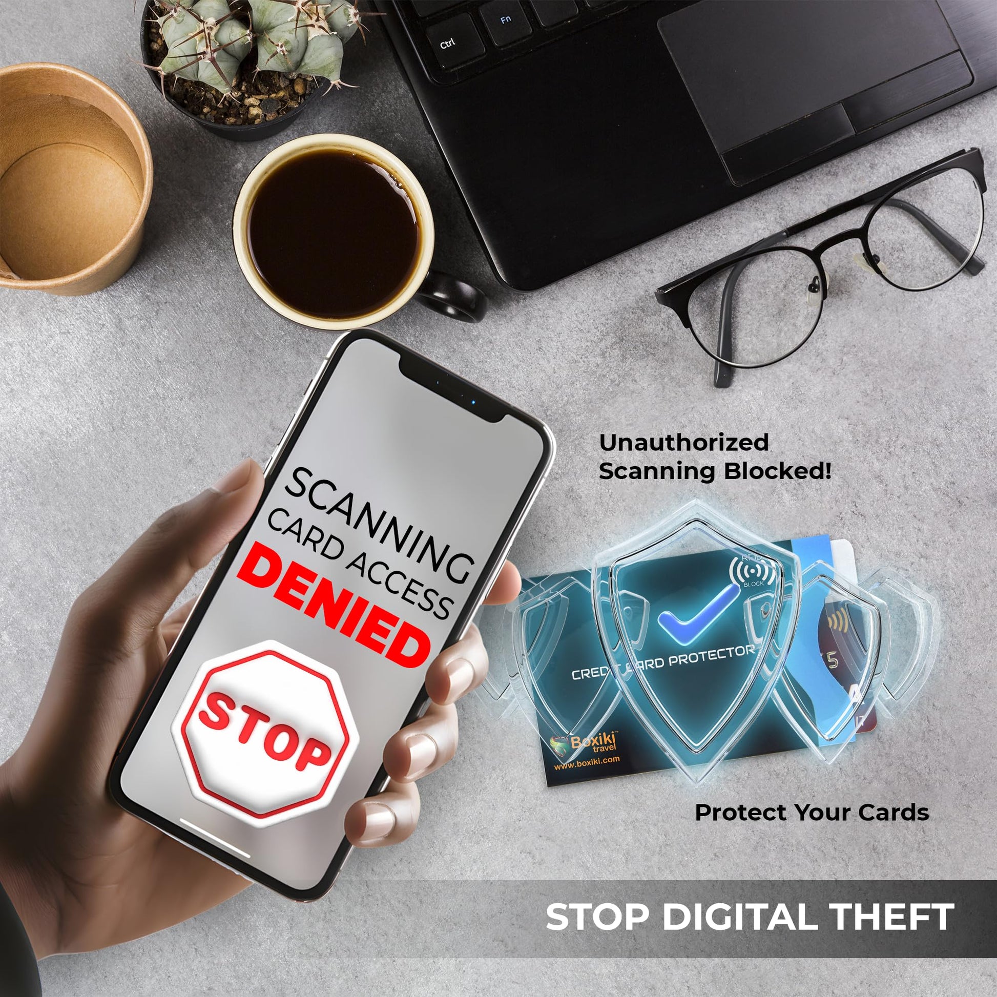• Made from special RFID blocking material, this credit cards holder is thin and lightweight. certified secure sleeves for credit cards protect against scanning of digital and electronic chips by thieves, tear- and water-resistant