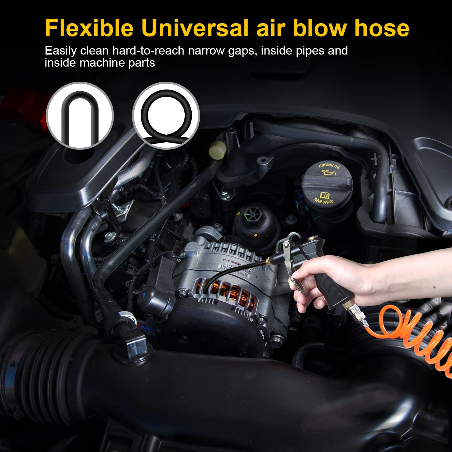 • 【Multiple Application】 This high volume air blow tool with diverse air nozzles for your different project need, air flow can be adjusted with the brass adjustable air nozzle to your need, 2 pcs air flow extensions with protective tip better for flimsy surface, flexible extended universal air blow hose allows for hard-to-reach narrow gaps, which is a perfect work partner for your air compressor!