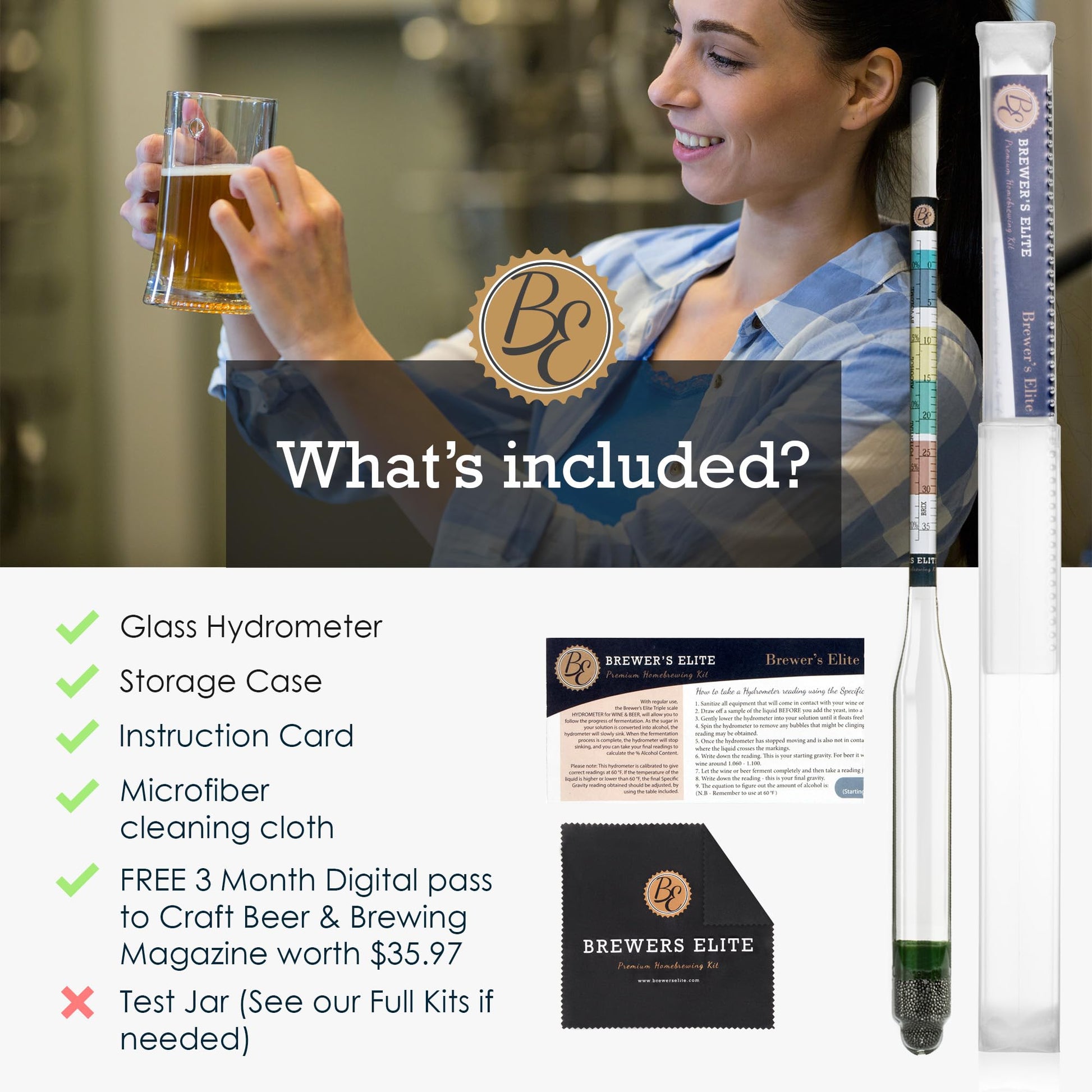 Brewer's Elite Hydrometer - for Home Brew Beer, Wine, Mead and Kombucha - Deluxe Triple Scale Set, Hardcase and Cloth - Specific Gravity ABV Tester