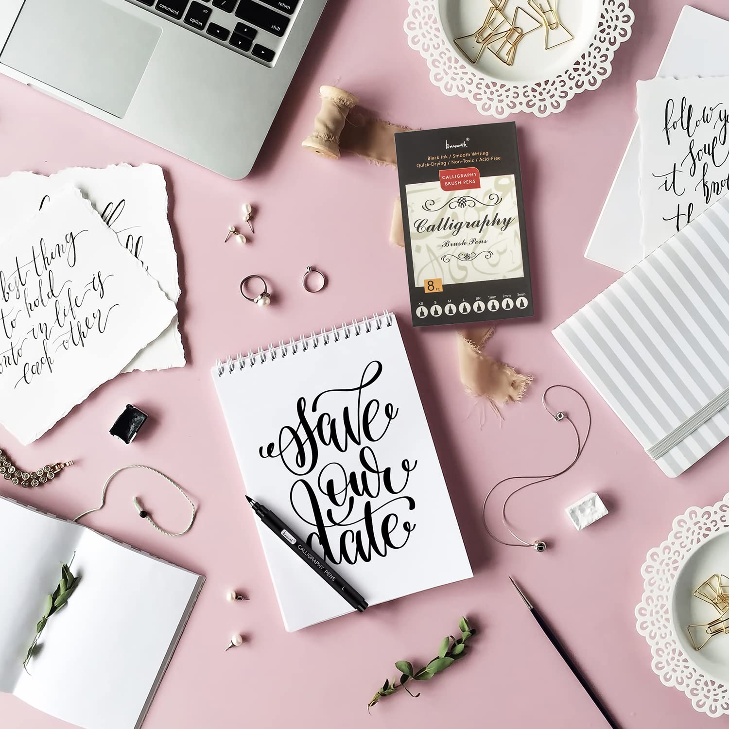 Brusarth Calligraphy Pens,8 Size Calligraphy Pens for Writing,Brush Pens Calligraphy Set for Beginners, Hand Lettering Pens