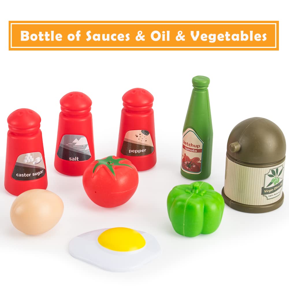 • Realistic Kitchen Playset & Food - Realistic cooking set encourages imagination, dexterity, and creative play, Teaches your little ones to be mother's little helper. The kettle can be filled with water and the spout can be pulled out, Give your child a gift that creates countless happy moments!