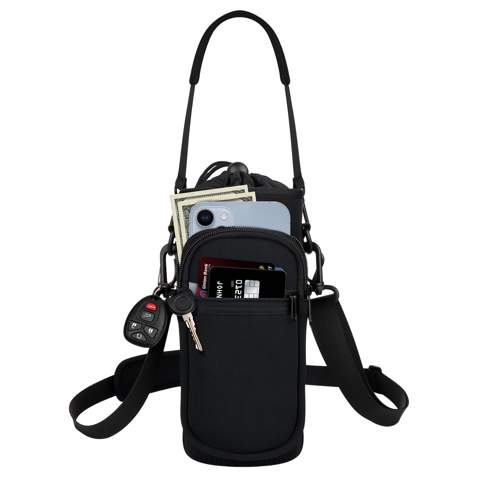 • EASY TO GO OUT: Each water bottle carrier comes with a card pocket, cell phone pocket, carry strap, crossbody strap and 2 hooks. You can carry your belongings with your water bottle. All designed to make traveling and exercising easier and less stressful