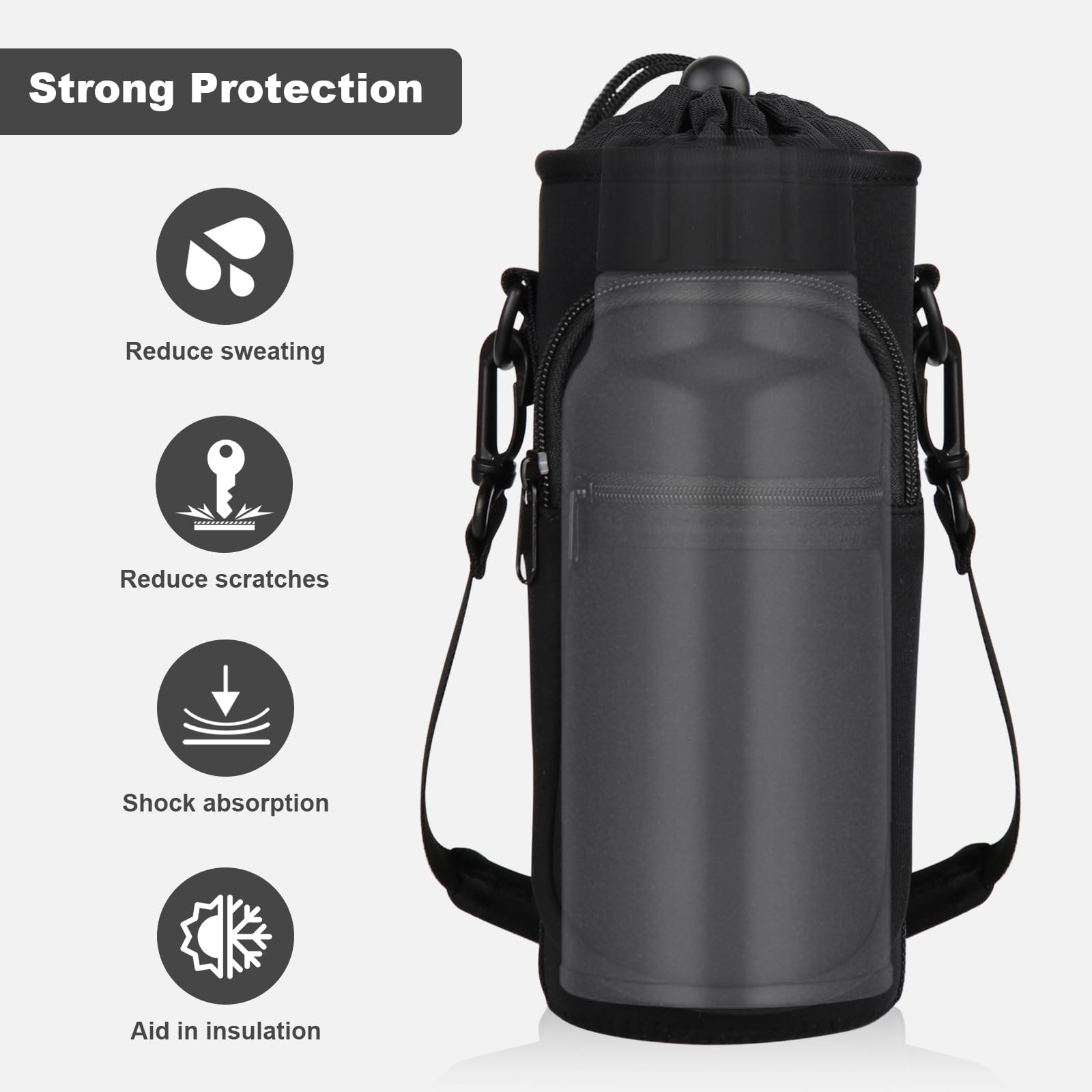 Bstge Water Bottle Holder with Strap, Water Bottle Carrier Bag with Phone Pocket, Shoulder Hand Strap Insulated Neoprene 32 oz Water Bottle Sleeve for Walking Hiking Camping Gym(black)