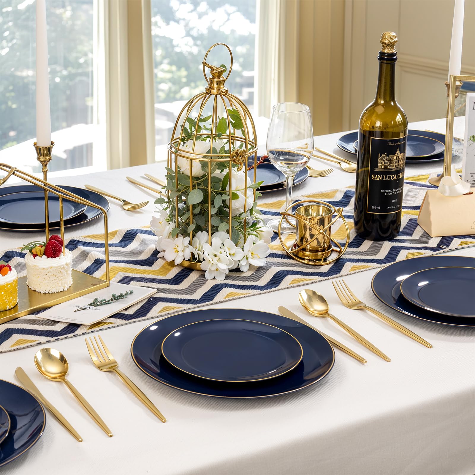 • Instant Sophistication for Every Gathering: From weddings to holiday feasts, our blue and gold plastic plates make ordinary moments extraordinary. The rich navy blue disposable plates with metallic accents create a cohesive upscale look without the hassle of reusable tableware.