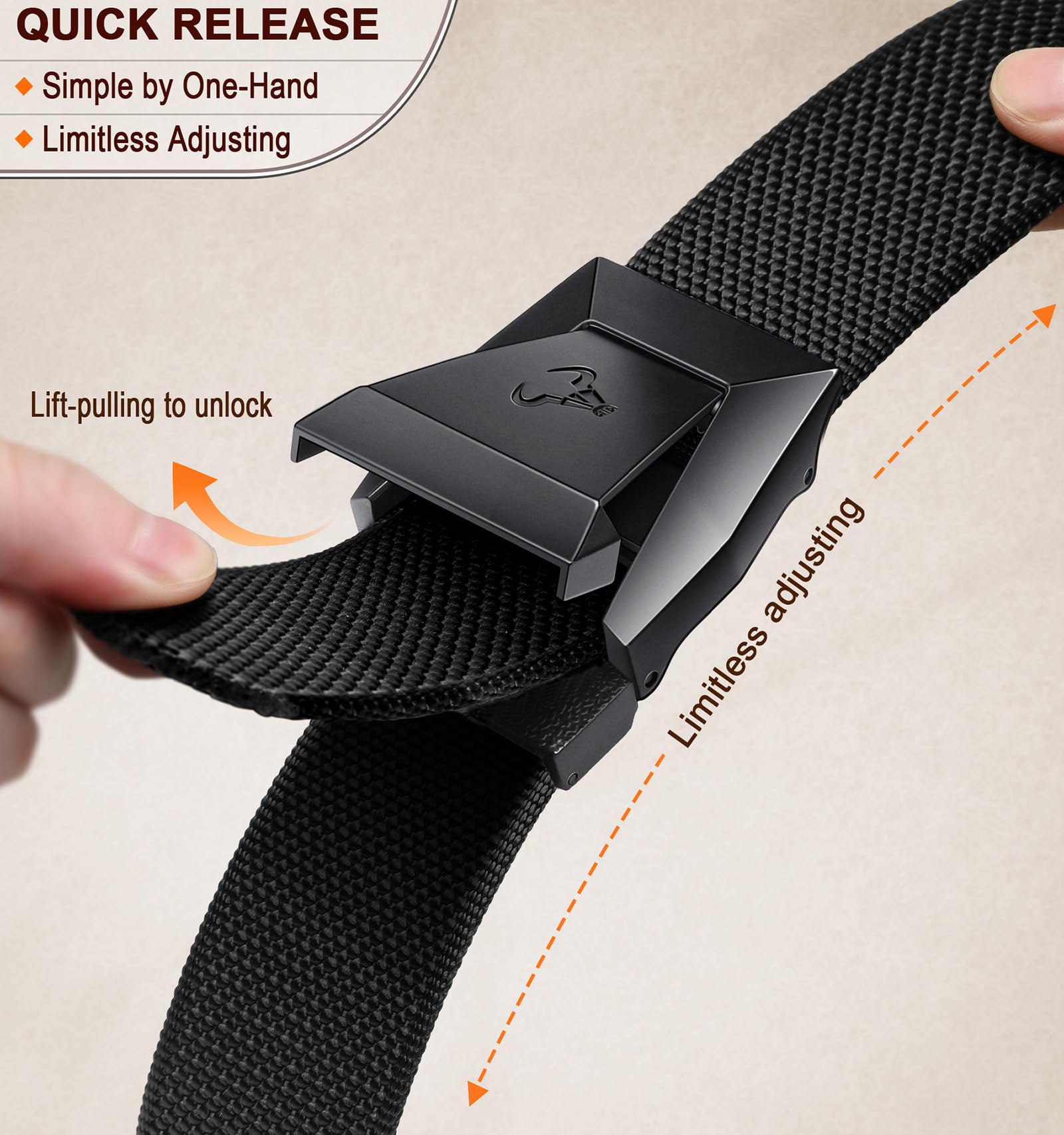 • BUILT TO LAST--Pure metal buckle with simple mechanism on nylon strap,it is an easy belt for you to go through all the rough occassions;