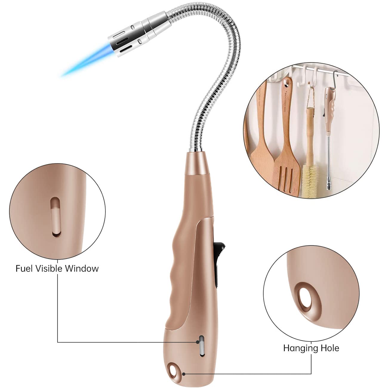 Flexible Long Neck and 360° Rotation: The lighter with a 360° flexible long neck protects you from burning your hand and can be rotated or bend to different angles at will. You can use it in various scenarios like BBQ, grill, fireplace, etc