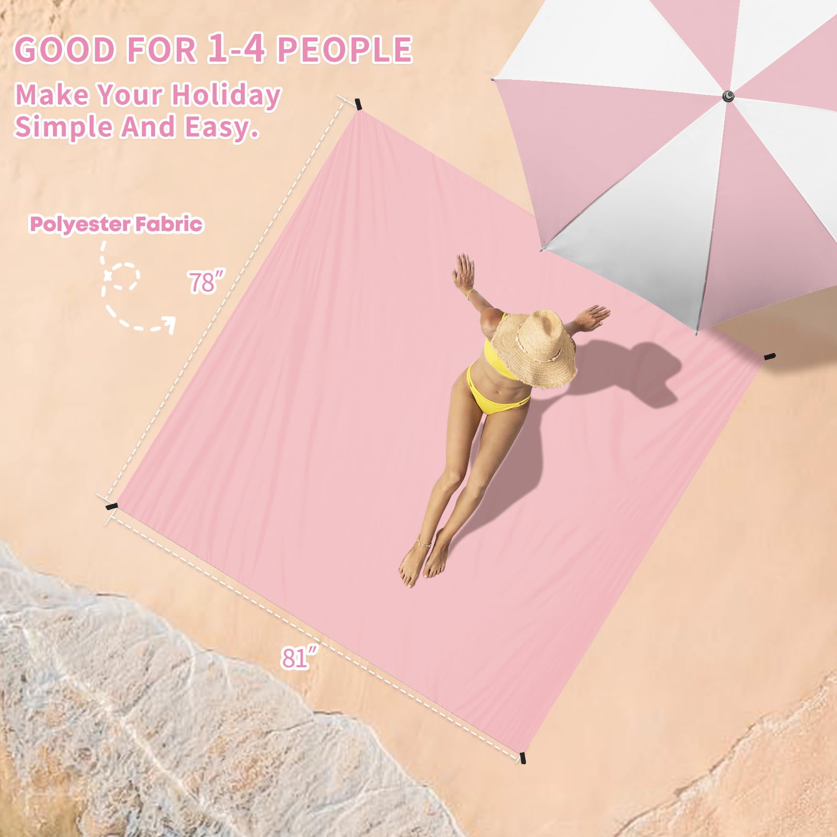 • 🌴Beach Blanket Waterproof Sandproof:78''×81''size beach blanket,suit for 1-4 adults. Made by parachute fabric,odorless,tear-resistant 210T polyester.Light weight and small after folding.Only 12 oz,small and mighty,which is easy to carry!