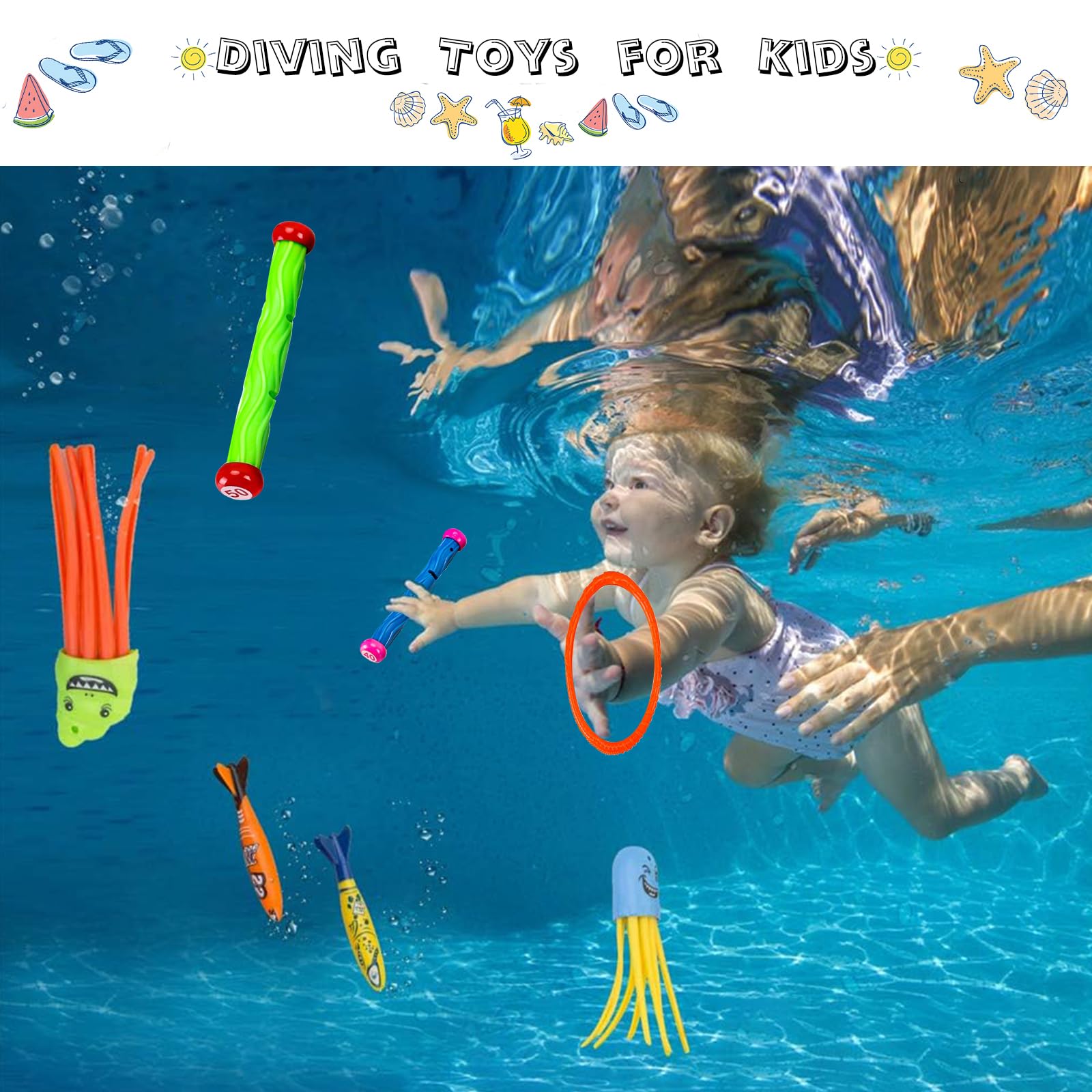 Cakuni Underwater Swim Pool Diving Toys - Summer Swimming Dive Toy Sets - Water Rings,Sticks,Octopus,Torpedo Bandits & Balls for Kids