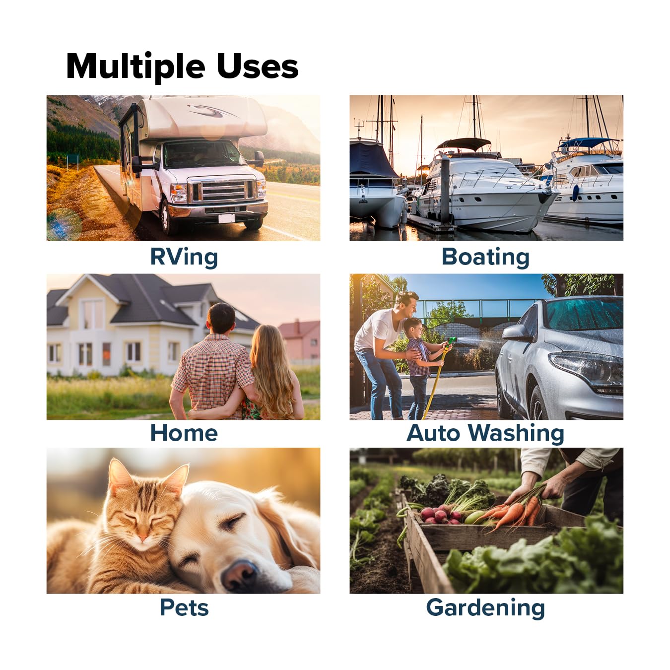 • Versatile Applications: Get ready for versatile outdoor tasks with this 25' long drinking hose, featuring a 1/2' inner diameter. It's perfect for RVing, camping, boating, gardening, pet cleaning, car washing, and lawncare. The easy-on grip connect makes handling a breeze.