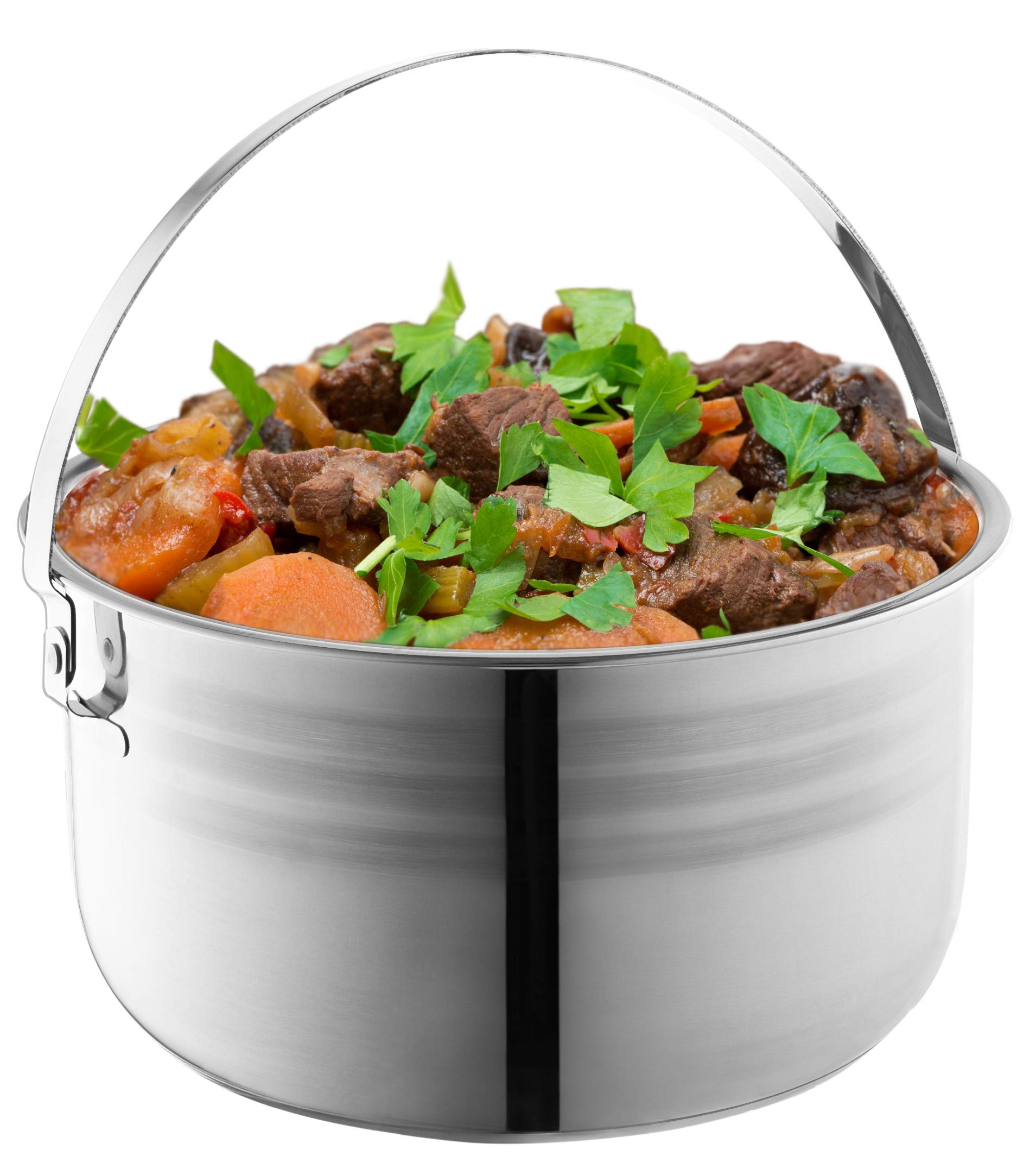 Details: Enjoy life off the grid with this hefty stainless steel pot set!
