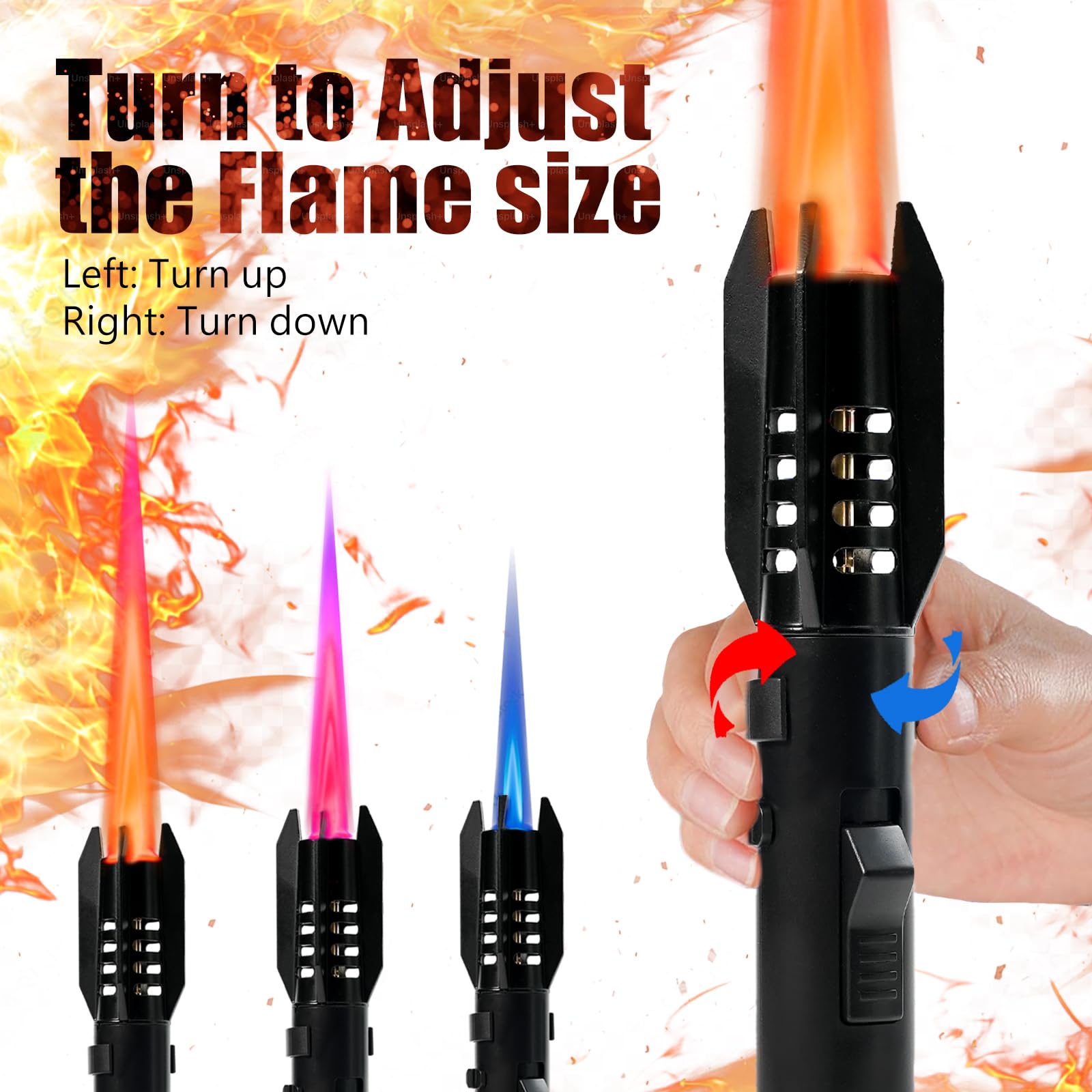 • Our cool butane torch lighter features a Jet flame color conversion ring at the nozzle, You can adjust flame size easily without any tools, which allows you to switch the flame from blue to red, which is comfortable to hold