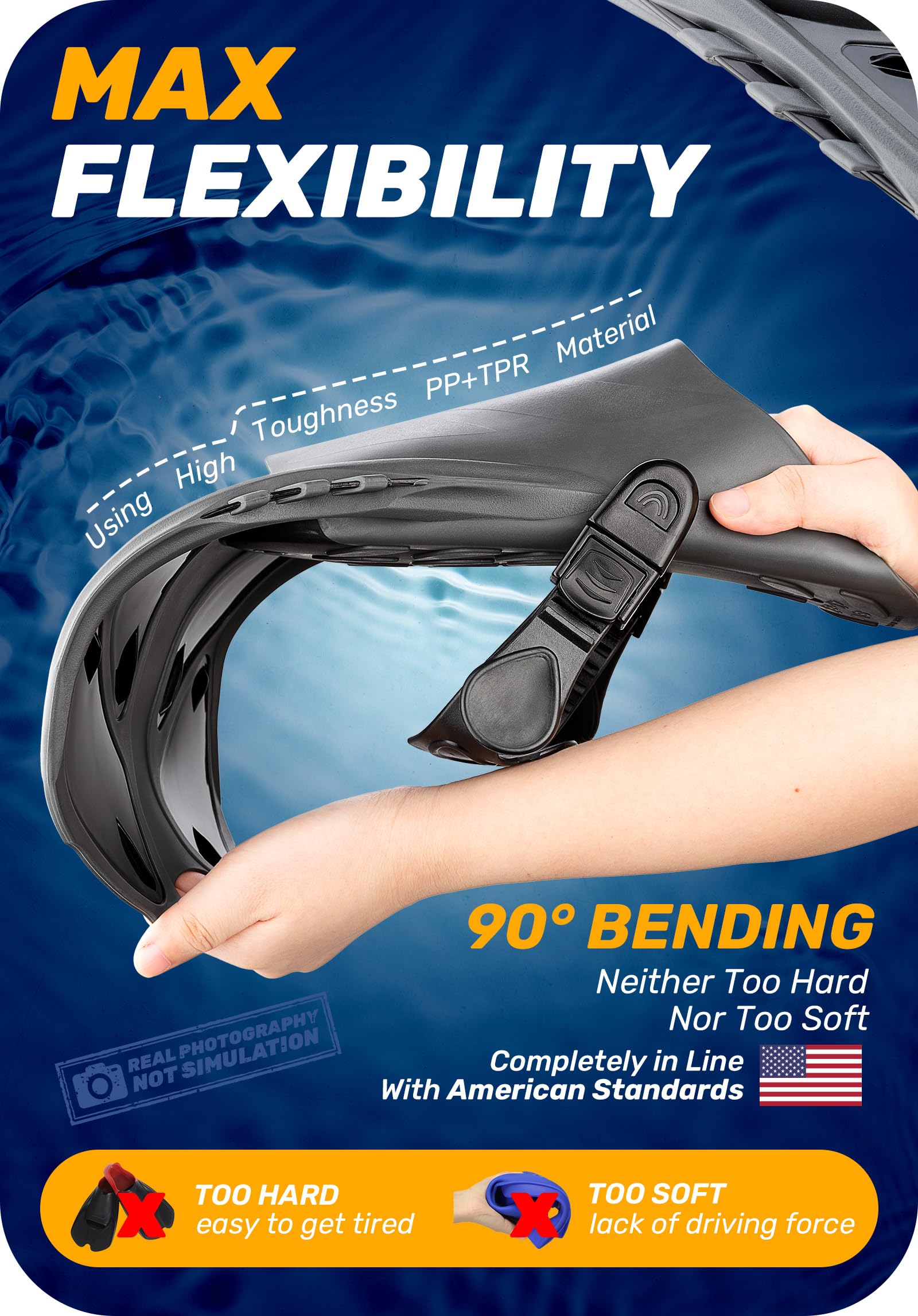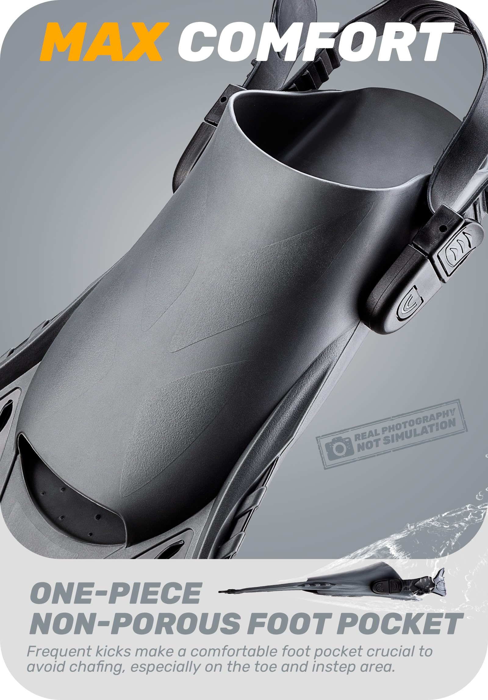 • Wears Comfortably, Support Various Way to Put On - Carefully select high quality material, soft foot pocket, flexible enough for barefoot, but can also be worn with fin socks or dive booties which help to protect a diver's feet from the cold, and blisters. (Reminder: Please purchase sizes up if wear with dive booties together)