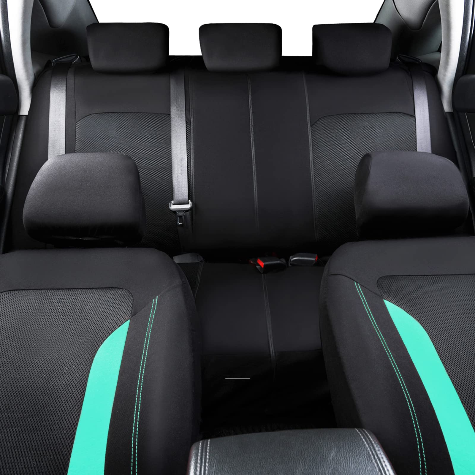 CAR PASS 3D Air Mesh Car Seat Covers Full Set, Breathable Sporty Rear Bench with Zipper for Armrest Box Universal Fit 95% Automotive SUV,Truck,Sedan Interior Cute Women Airbag Compatible, Black Mint