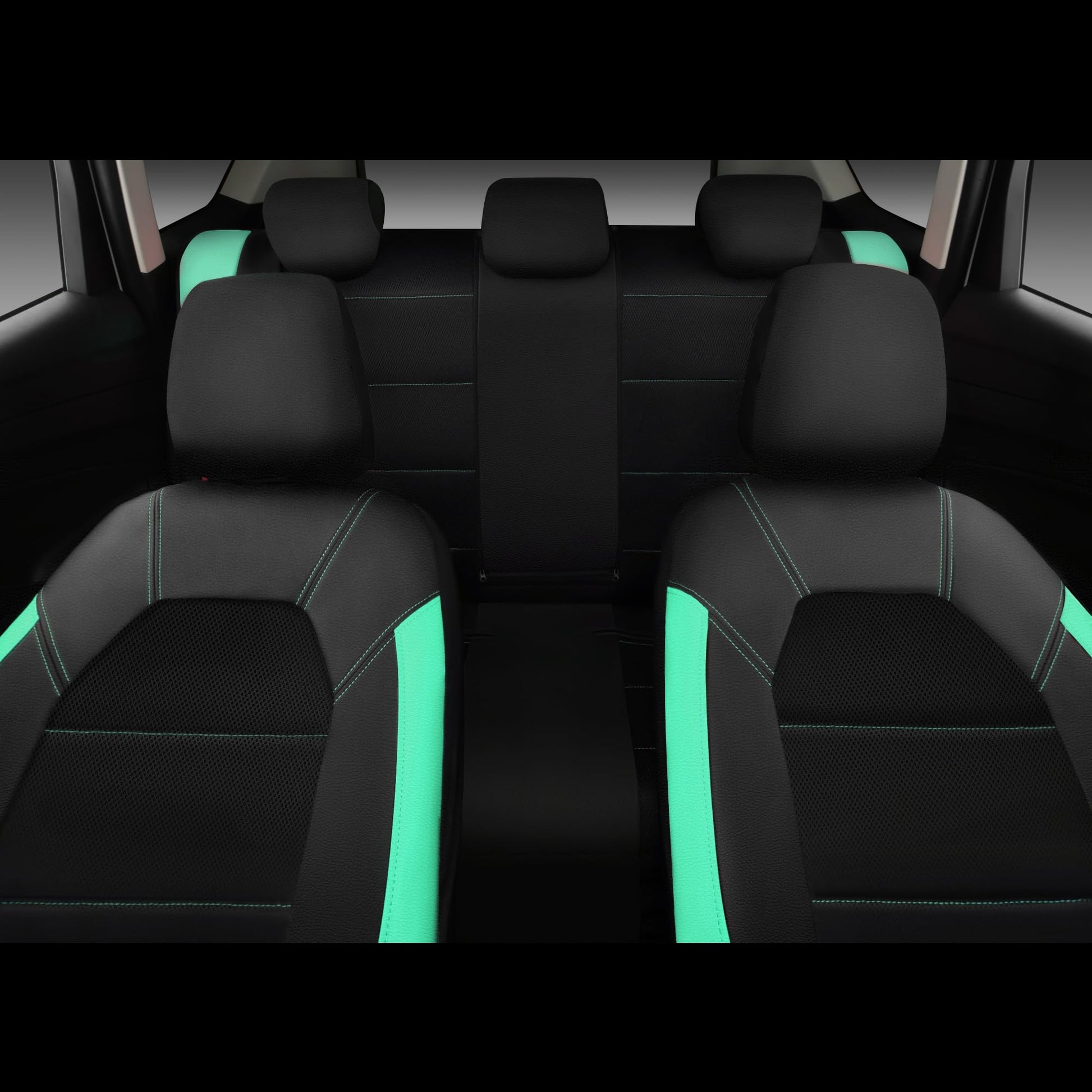 CAR PASS Leather Seat Covers, Breathable Universal Car Seat Cover Full Set for Cute Women Girly,Super 5mm Composite Sponge Inside,Airbag Compatible Fits Most Auto,SUVs,Trucks,Vans(Full Set,Black&Mint)