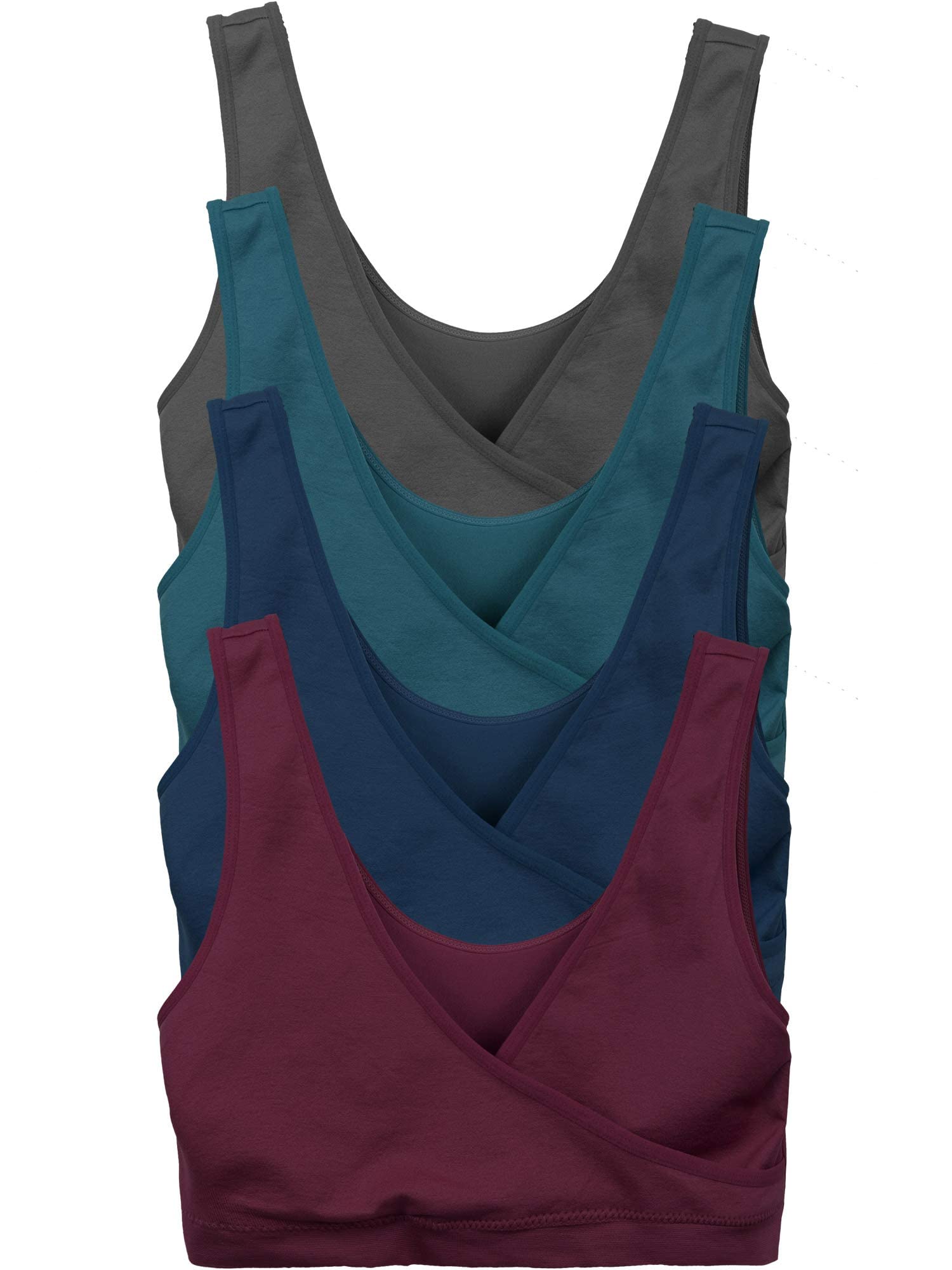 • 4 Pack Nursing Maternity Comfort Bras for Women: Traditionally called a sleep bra - this cross front style with wider straps is ideal for all day wear (or sleeping all night!). A comfy alternative to a sports bra or clip down nursing bra. The criss cross design and super stretch 4 way knit - allow for easier access than old school breastfeeding bras. Please see our size chart below and in alt images to determine best fit.