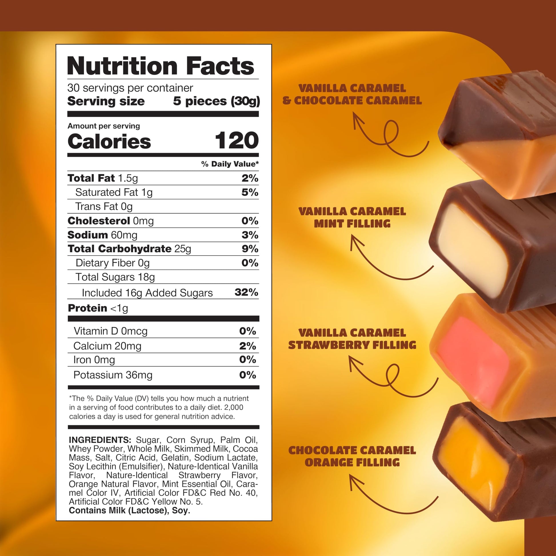• Indulge in the ultimate treat with these delicious Assorted Caramel Cubes Candy; they practically melt in your mouth
