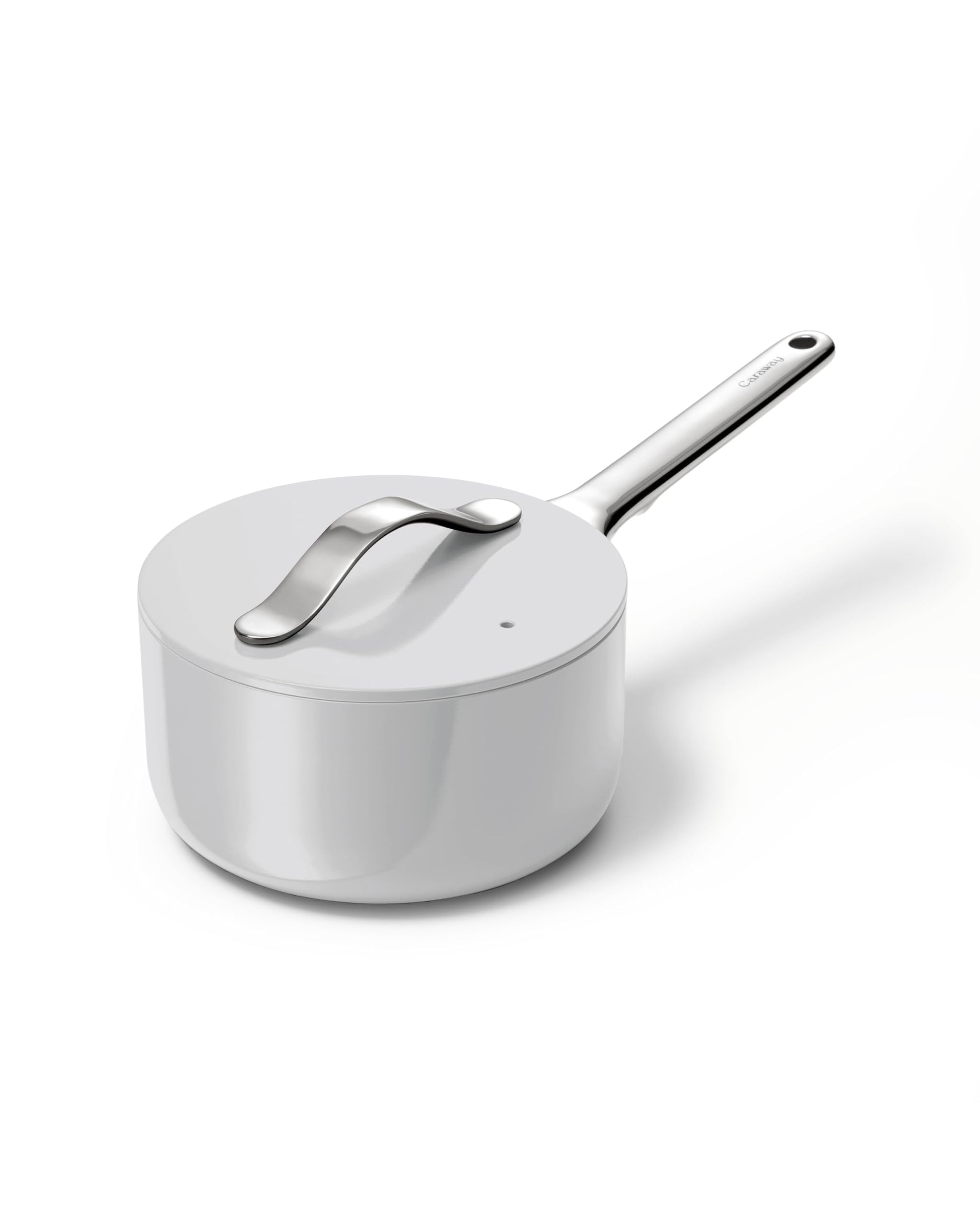 Caraway Nonstick Ceramic Sauce Pan with Lid (1.75 qt) - Non Toxic, PTFE & PFOA Free - Oven Safe & Compatible with All Stovetops (Gas, Electric & Induction) - Gray