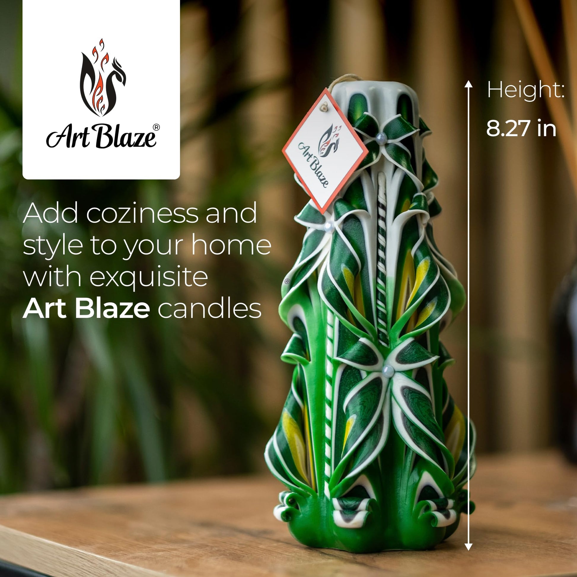 Carved Candles - Handmade Long Burning Decorative Luxury Candles - Unscented - Perfect for Home Decor, Birthdays, Romantic Occasions, Gifts for Women, Mother's Day Gift for Mom - Big Green