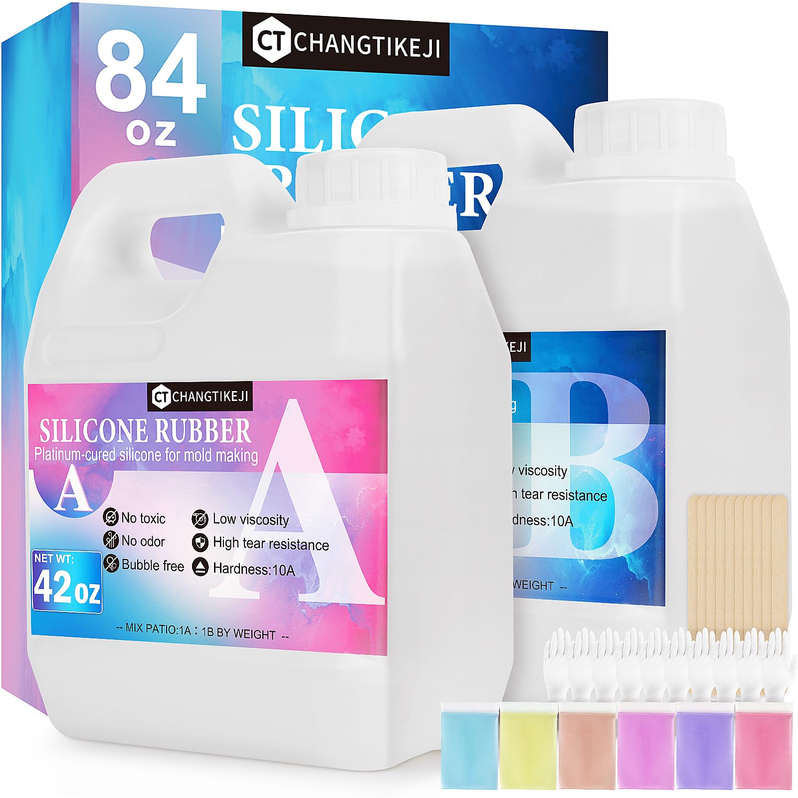CHANGTIKEJI Silicone Mold Making Kit, 84oz 10A Elastic Liquid Silica Gel for Casting Resin molds and Candle & Soap Mold,Fast Cure Translucent Platinum Silicone Rubber