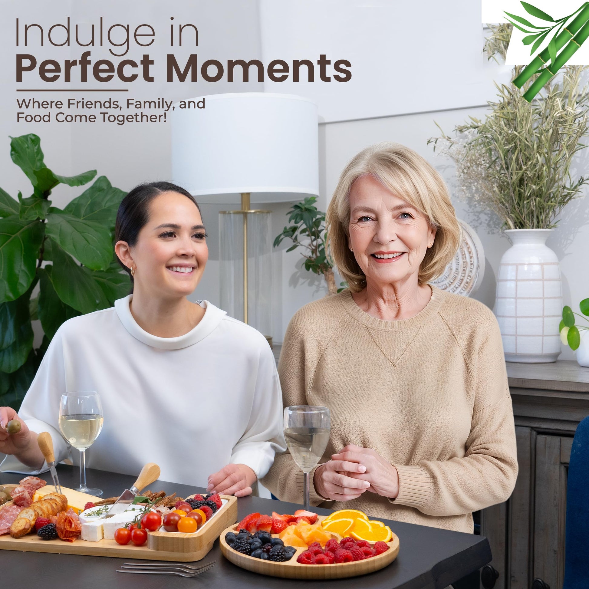 • IDEAL GIFT SET: This elegant bamboo charcuterie board set makes a memorable Mothers Day gift for mom, and a great gift for women, men, couples, or anyone who loves hosting. Whether for him, her, or a couple, this cheese board set is a stylish and practical addition to any home. Perfect for romantic dinners, anniversaries, or as a thoughtful gesture, it adds a touch of sophistication to any special occasion.