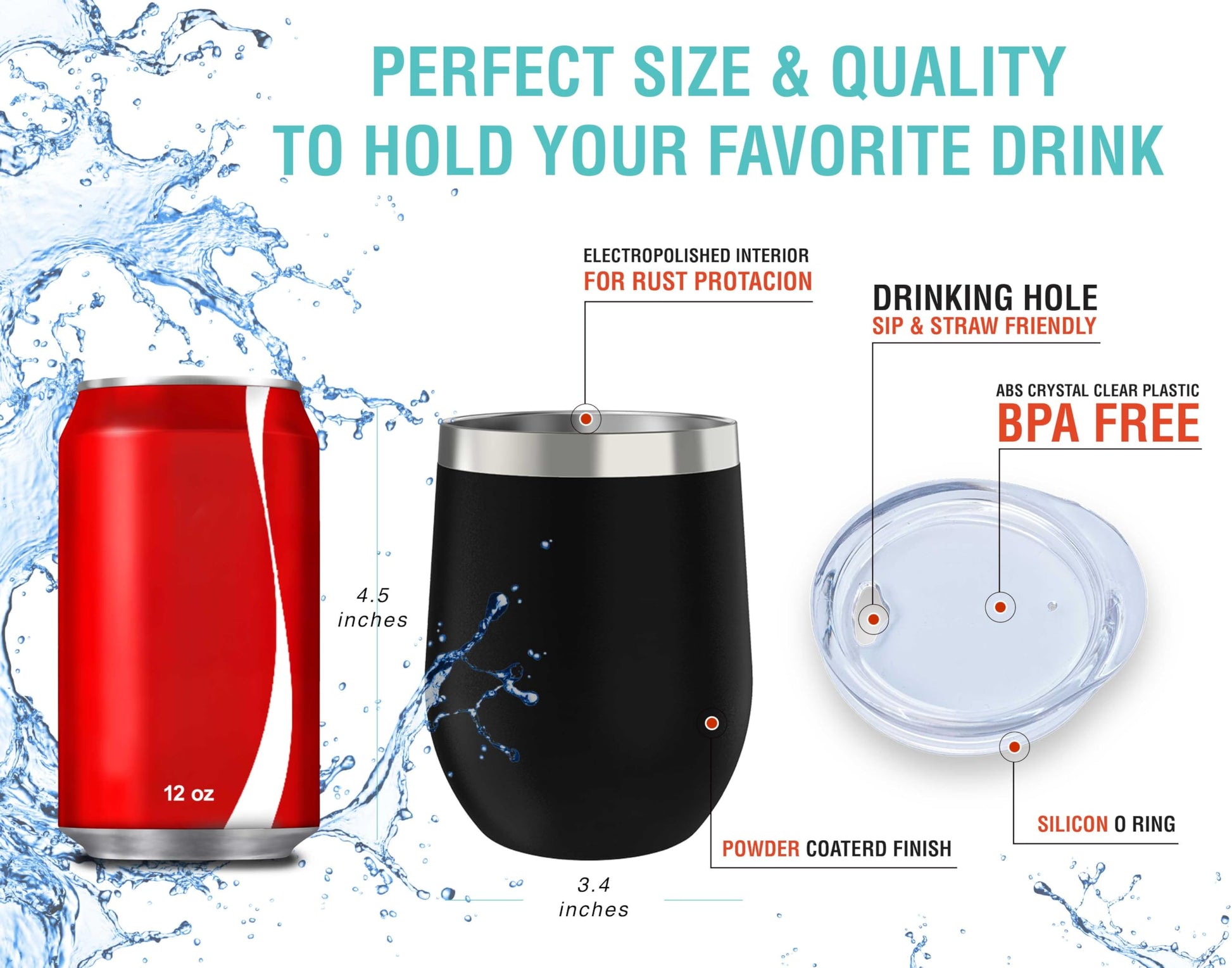 • GET A MODERN, EYE-CATCHING 12 Oz WINE TUMBLER that will add color to your life! Comfortable in the hand, portable and lightweight to take on your outdoor adventures! Worry no more about your little adventurers breaking their smoothie/juice/water or milkshake cups. UNBREAKABLE and SAFE for kids, teenagers and adults, it is a cute, trendy and youthful colored metal wine glass, your #1 choice in home/camping/holiday/sports/ travel stainless wine glass to go!