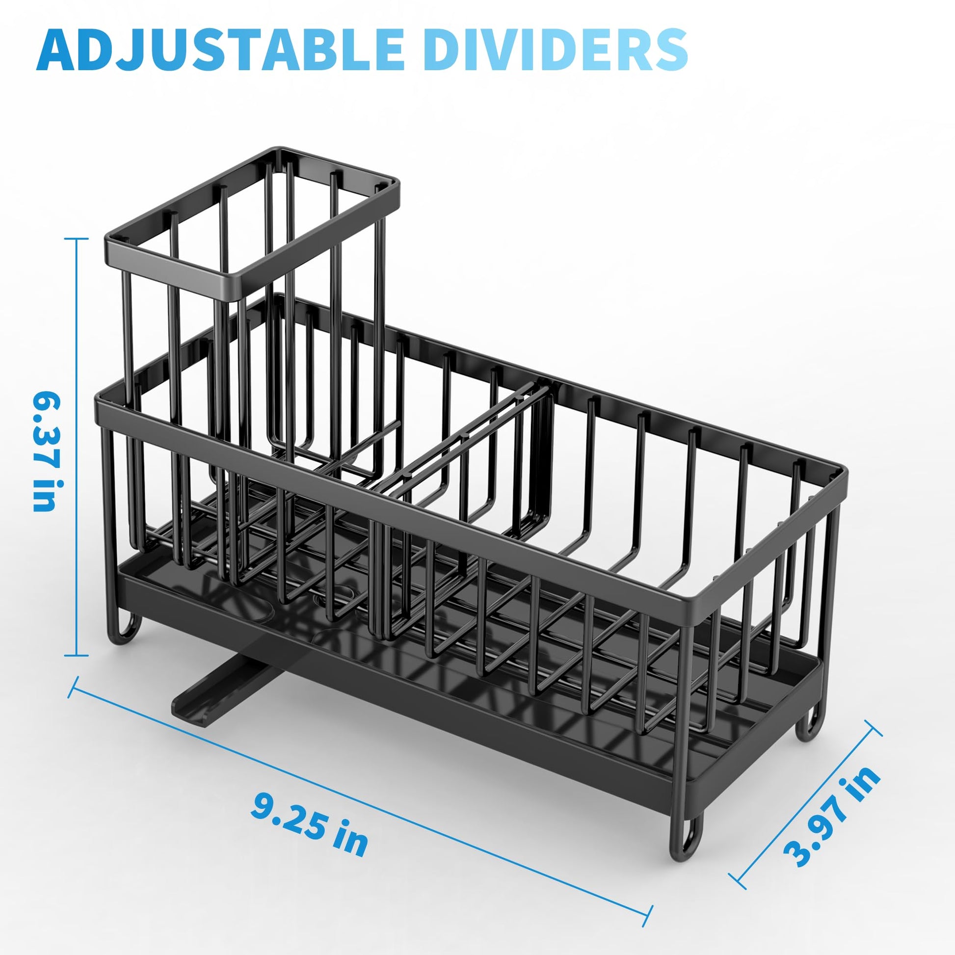 • 【SMALL VOLUME】 Cisily sponge holder is suitable for kitchens with limited space. It measures only 9.25'*3.97'*6.37', Holds a detergent bottle, a sponge ball and sink stopper. With an extra upgraded brush holder that can hold up to 4 small and large sized brushes, with the Cisily Sink caddy you can save countertop space perfectly.