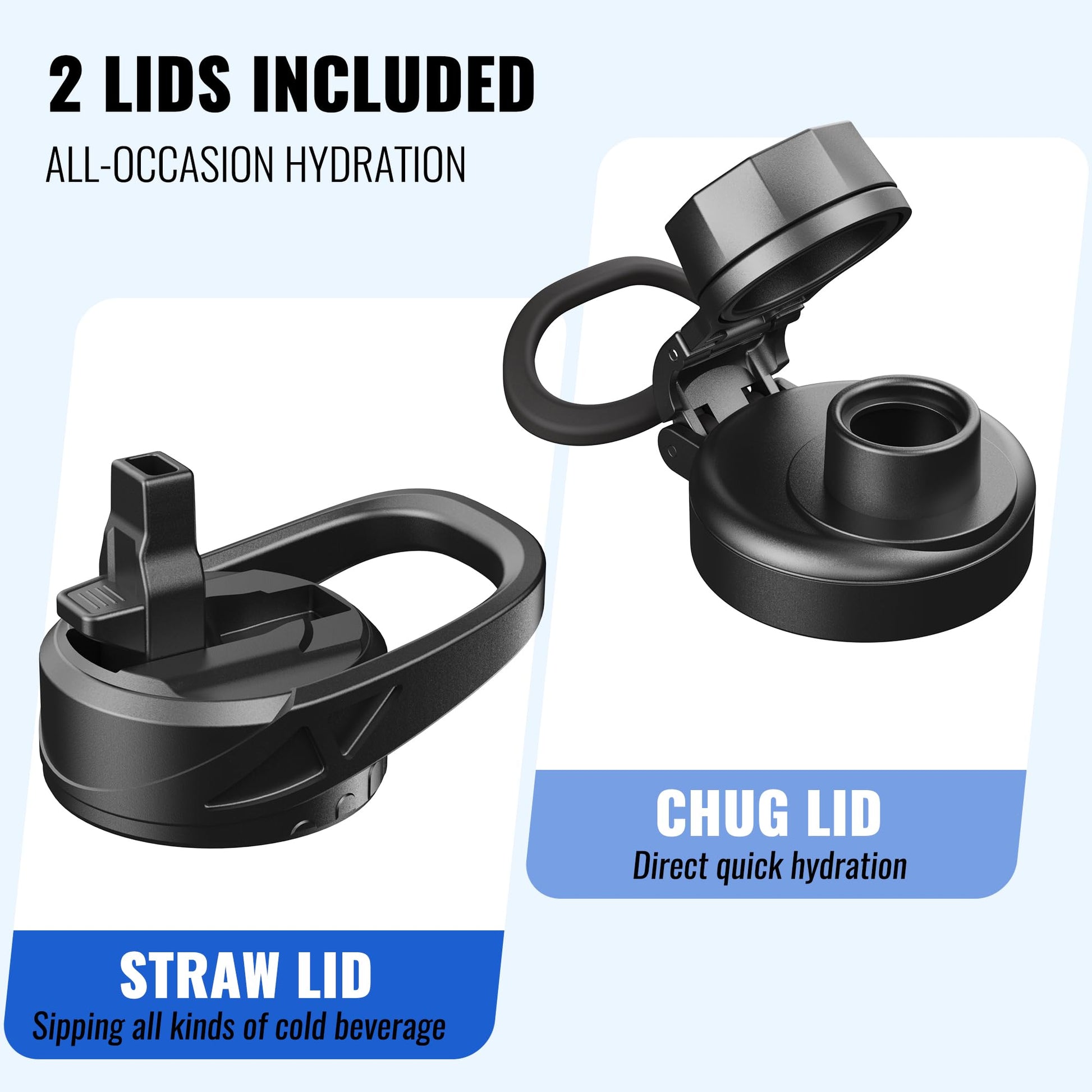 • TWO DIFFERENT LIDS DESIGN: The motivational water bottle is equipped with 2 wide-mouth lids, 1 flip-up straw lid and 1 easy-twist spout lid, All caps allow for easy one-handed or hands-free sipping when you are busy or on-the-go