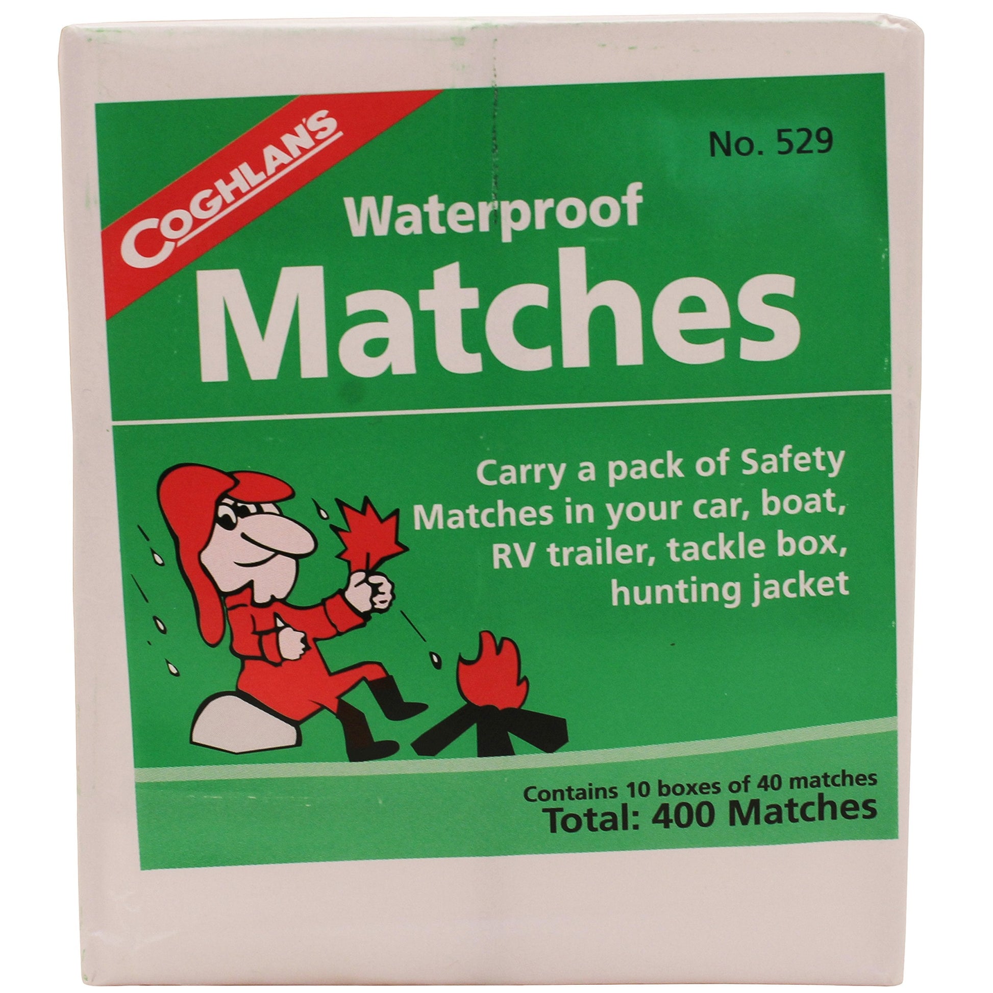 Details: Coghlan's Waterproof Matches provide a reliable way to light fires, stoves, candles, mosquito coils, and more even after getting wet. Ideal for camping trips, on the boat, at the cabin, or in the backyard. Each box comes with a striker surface that can be used after being wet. These matches cannot light accidentally, making them safe to carry and store with other camping equipment.