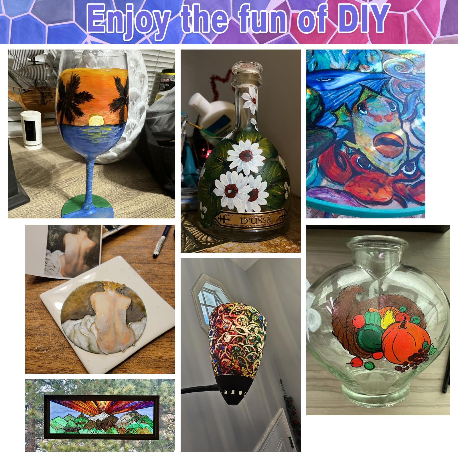 • ✔【Wide Range of Applications】The COLORFUL stain glass paints set can be used on various transparent surfaces, including but not limited to glass, wine glasses, porcelain, ceramics, gallery, glassware, enamel, and windows etc.