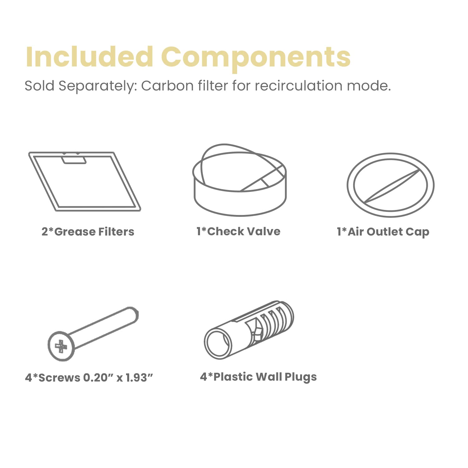 • 5-Layer Reusable Aluminum Filte: The 5-layer aluminum filter effectively removes grease and cooking odors. Also, being easily detached and dishwasher safe, it can always sustain its optimal efficiency.
