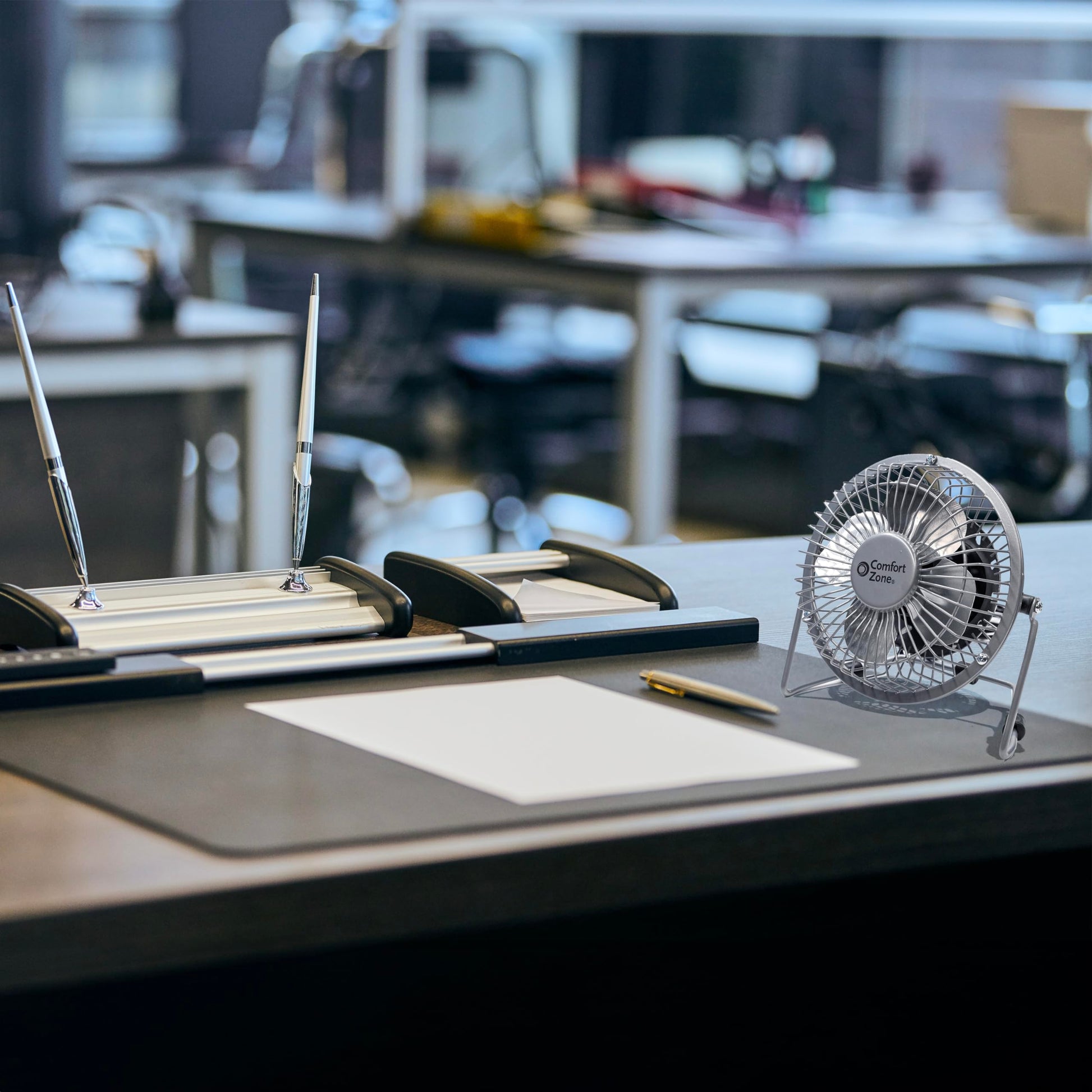 Comfort Zone 4-inch All-Metal Desk Fan with USB or Power Cord, Single Speed, 360 Degree Adjustable Tilt, Compact & Durable Mini Electric Fan for Home, Office or Travel Use, Silver