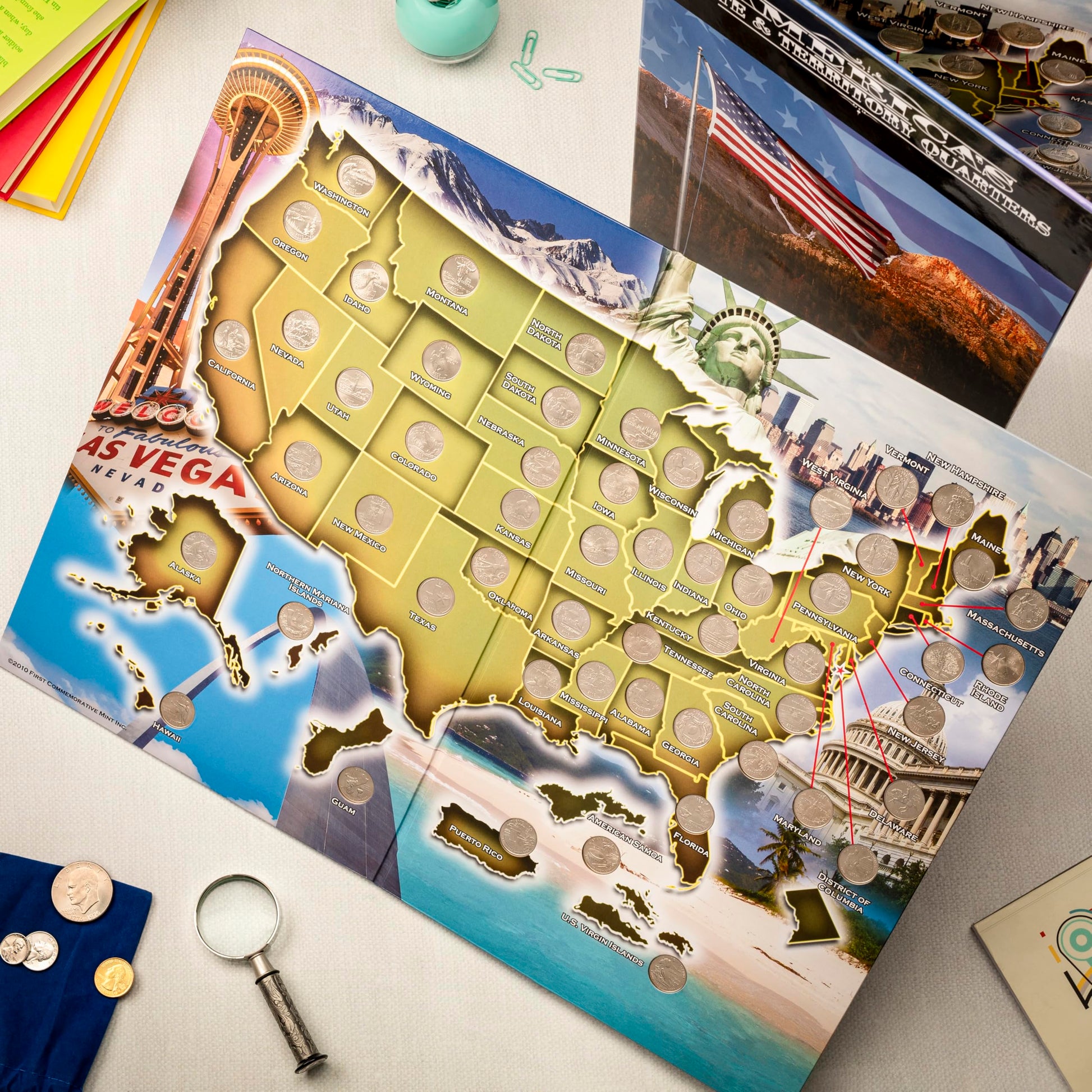 • Coin are presented and housed in a beautiful sturdy & strong display folder, Folder Depicts all 50 states and the 6 U.S. Territories
